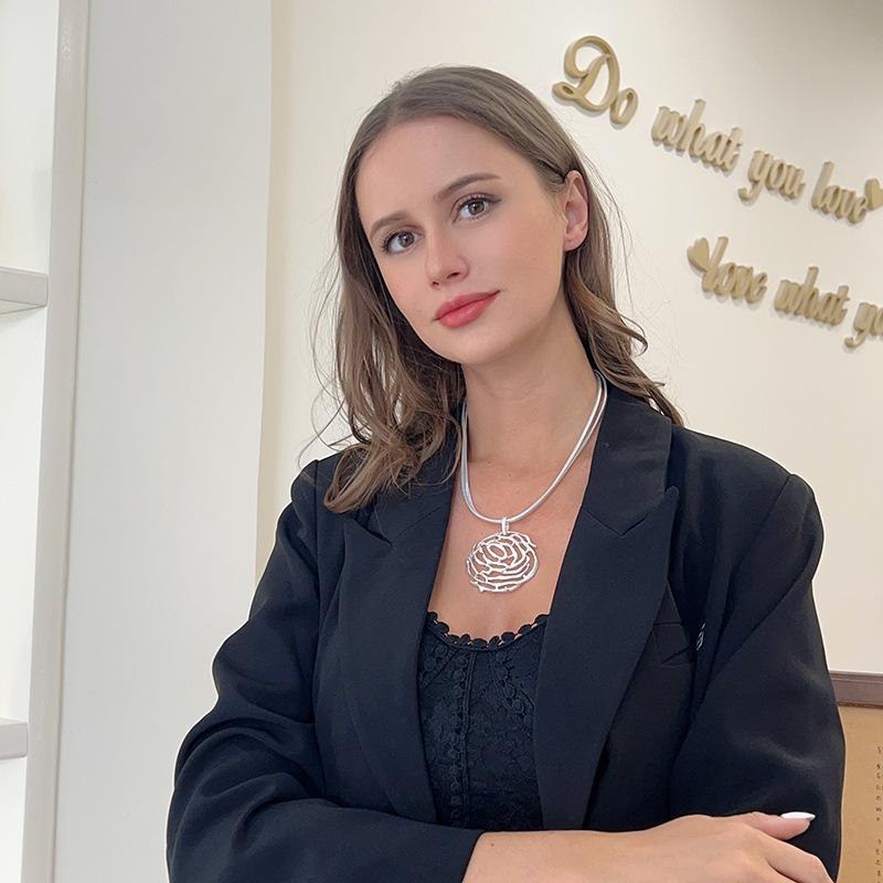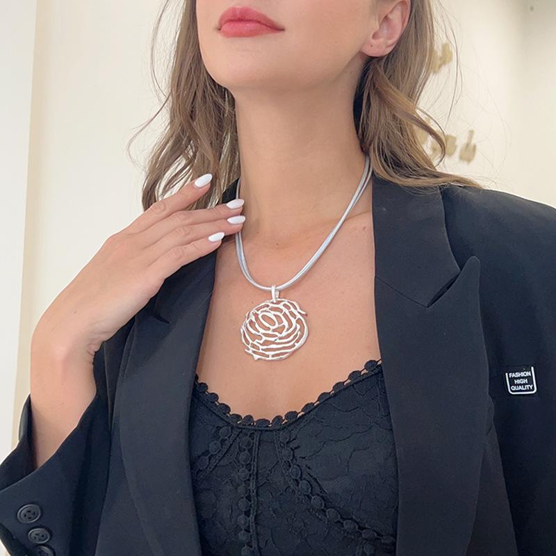 Novo Colar Feminino Versátil Vazado de Moda Europeia e Americana Exclusivo Transfronteiriço da Amazon Colar Curto de Corrente para Clavícula com Flor