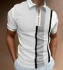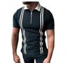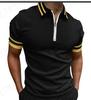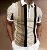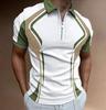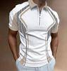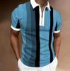 Roupa Masculina de Exportação Europeia e Americana Venda Quente Camiseta Polo de Manga Curta com Zíper Listrada Estampada 3D para Homem Frete Grátis