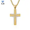Novo Design de Padrão de Pneu Personalizado com Incrustações de Pedra Colar Masculino Hip-Hop Bicolor de Aço Titânio Pingente de Cruz de Rua
