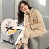 Pijamas de algodão puro mulheres outono e inverno nova chegada Cardigan Lapela bonito coelho desenhos animados impresso damasco de manga comprida roupas para as mulheres