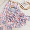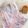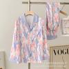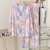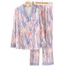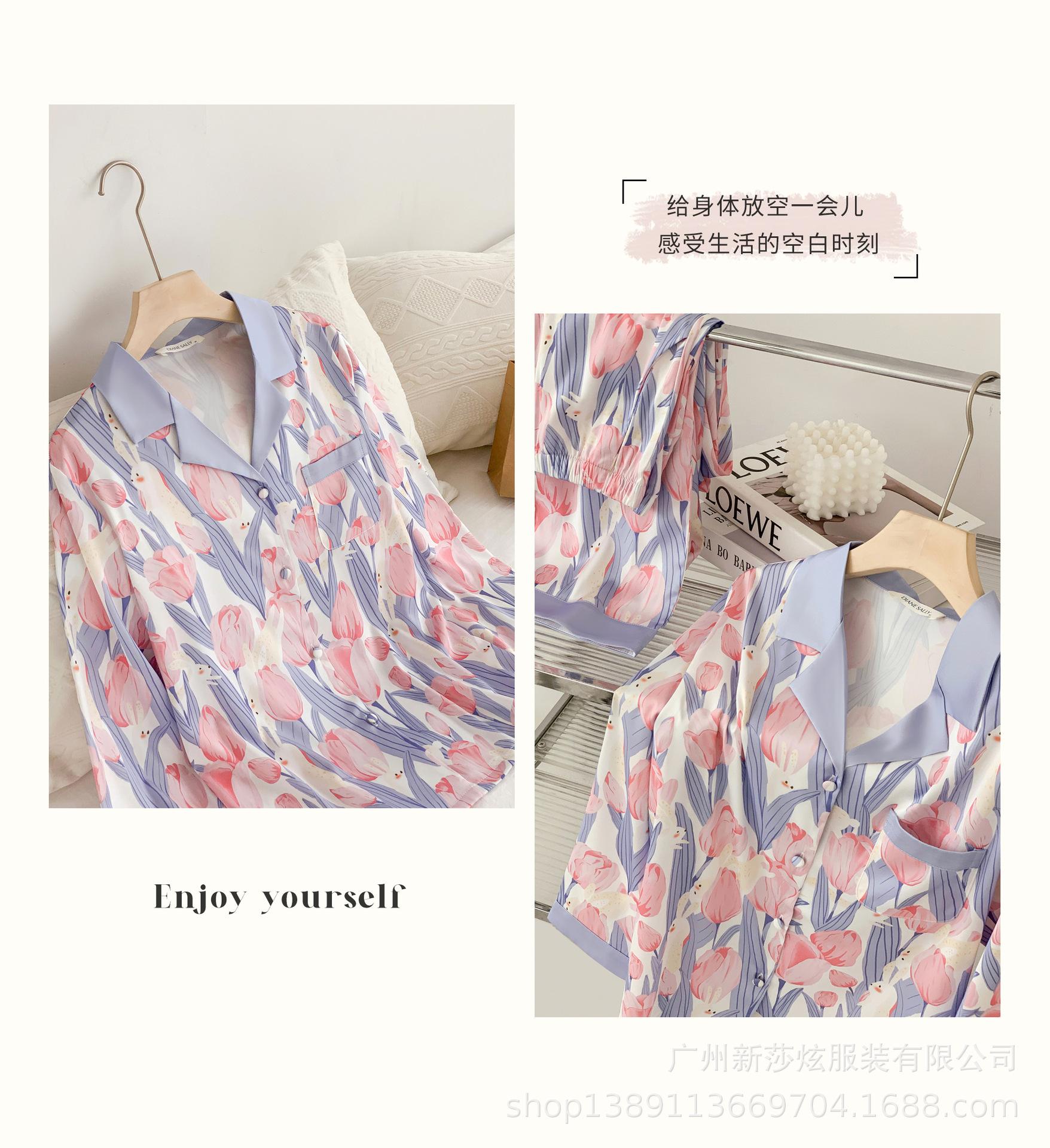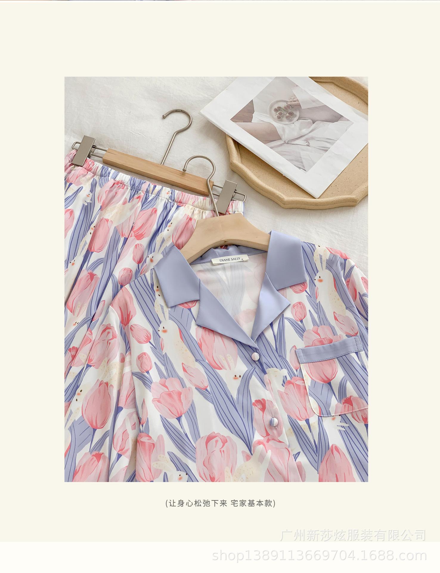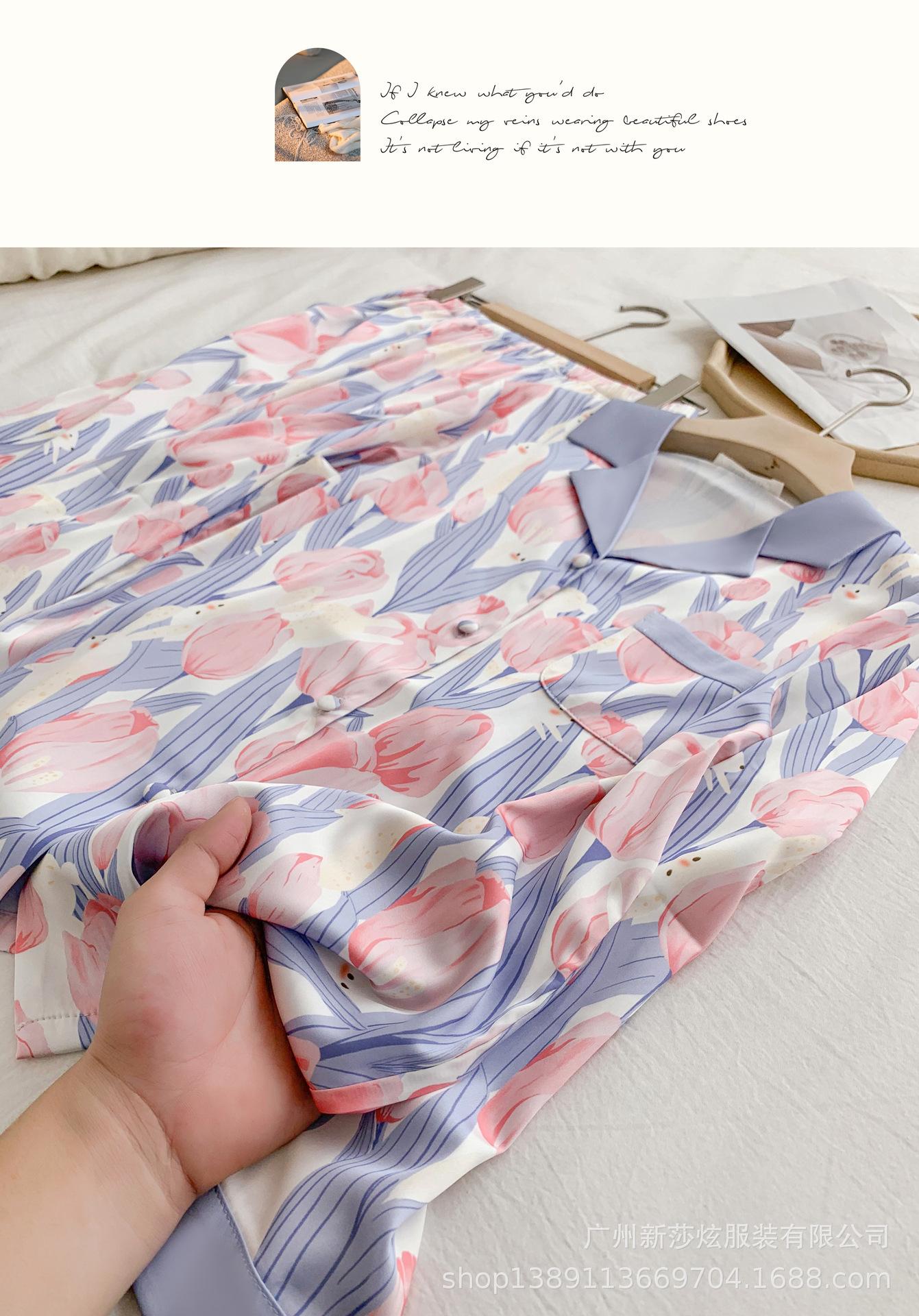 Pijama Doce Fina de Seda Gelo e Neve com Estampa de Tulipa Personalizada Feminina Estampada Roupa de Casa Conjunto Calça Manga Longa Atacado