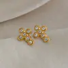 Brincos de Cruz com Zircônia Yiyi Moda Europeia e Americana, Aço Inoxidável Banhado a Vácuo Ouro 18K, Brincos de Luxo de Alta Qualidade para Mulheres