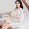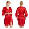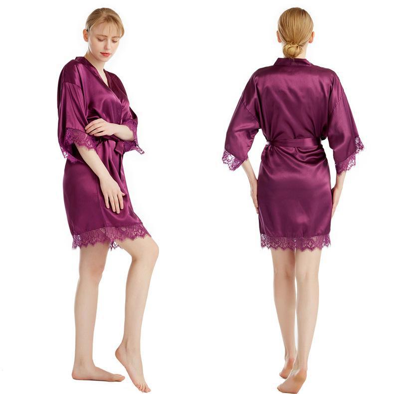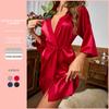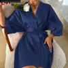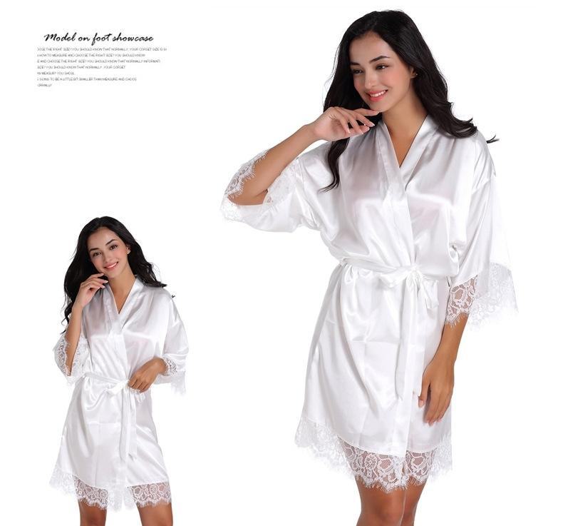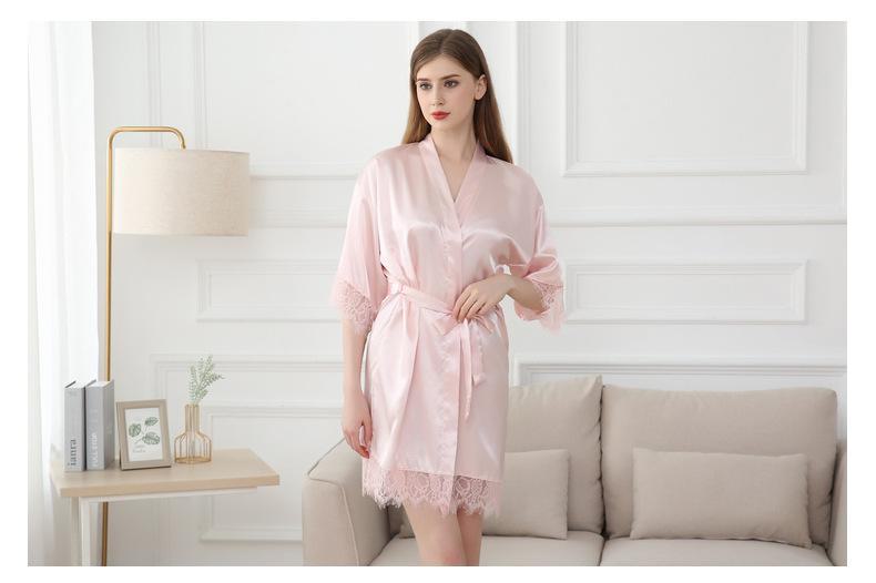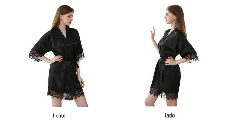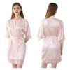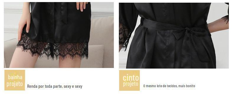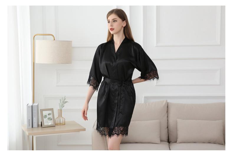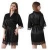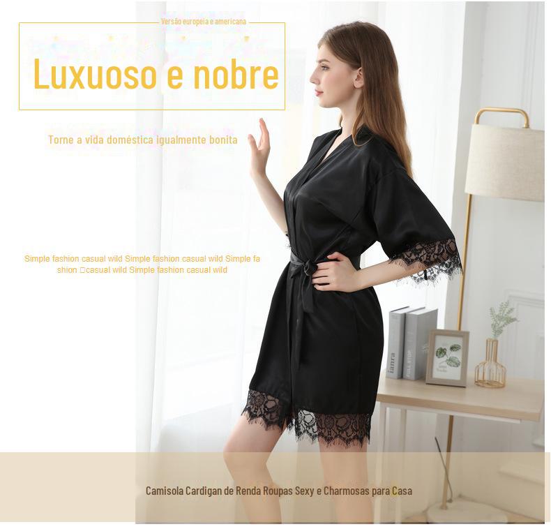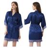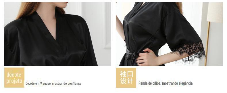 Cross-border manga de sete pontos sexy renda cor sólida casa camisola roupão de banho verão mulheres de seda cardigan vestido de casamento