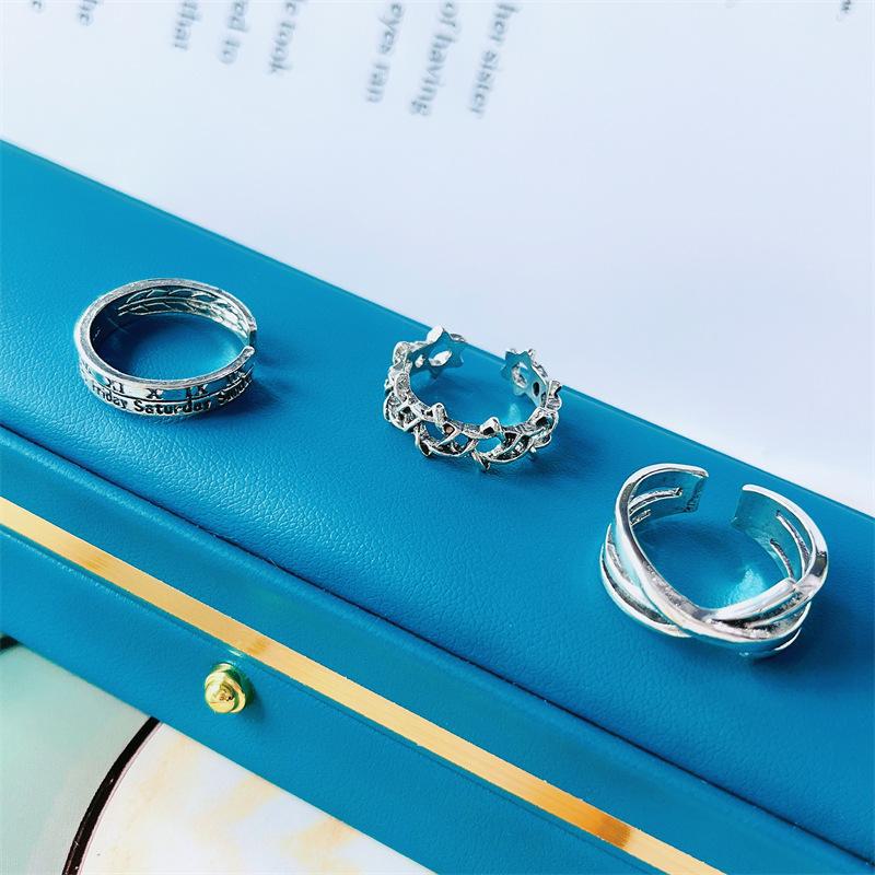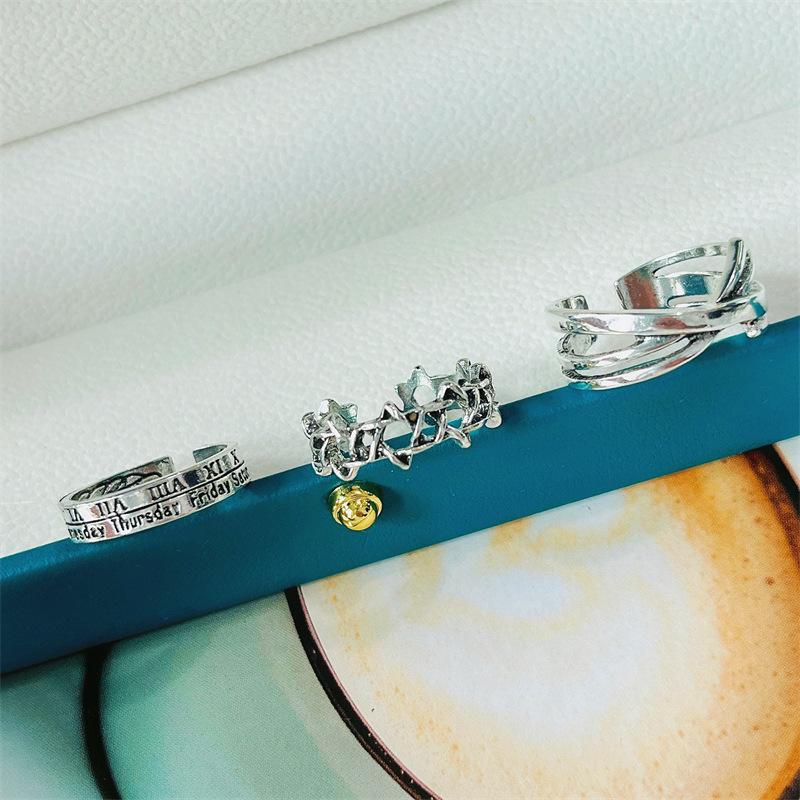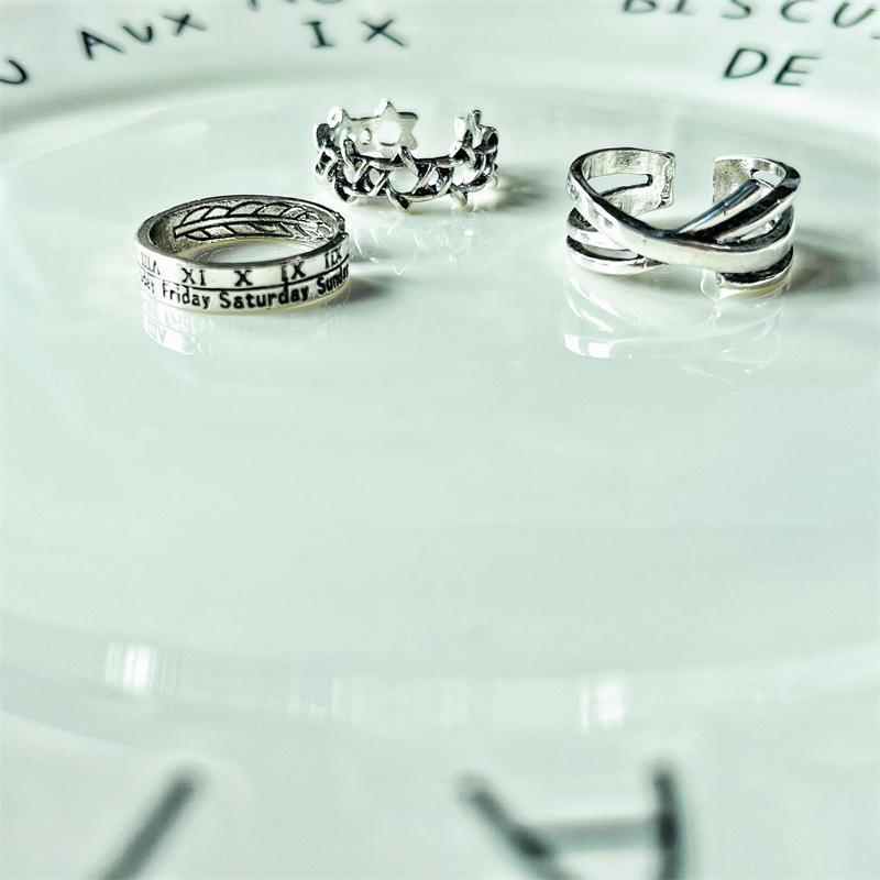 Nome do produto: conjunto de anel de 3 peças com estrela de seis pontas em numeral romano vintage