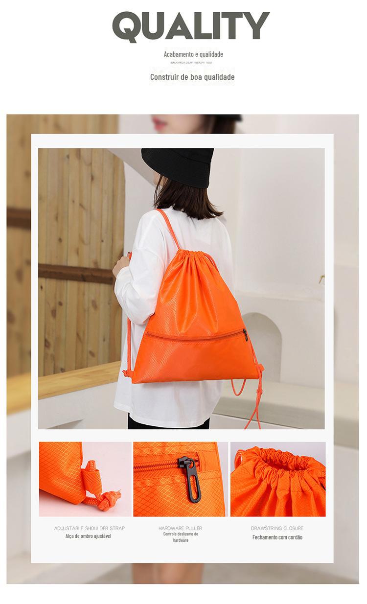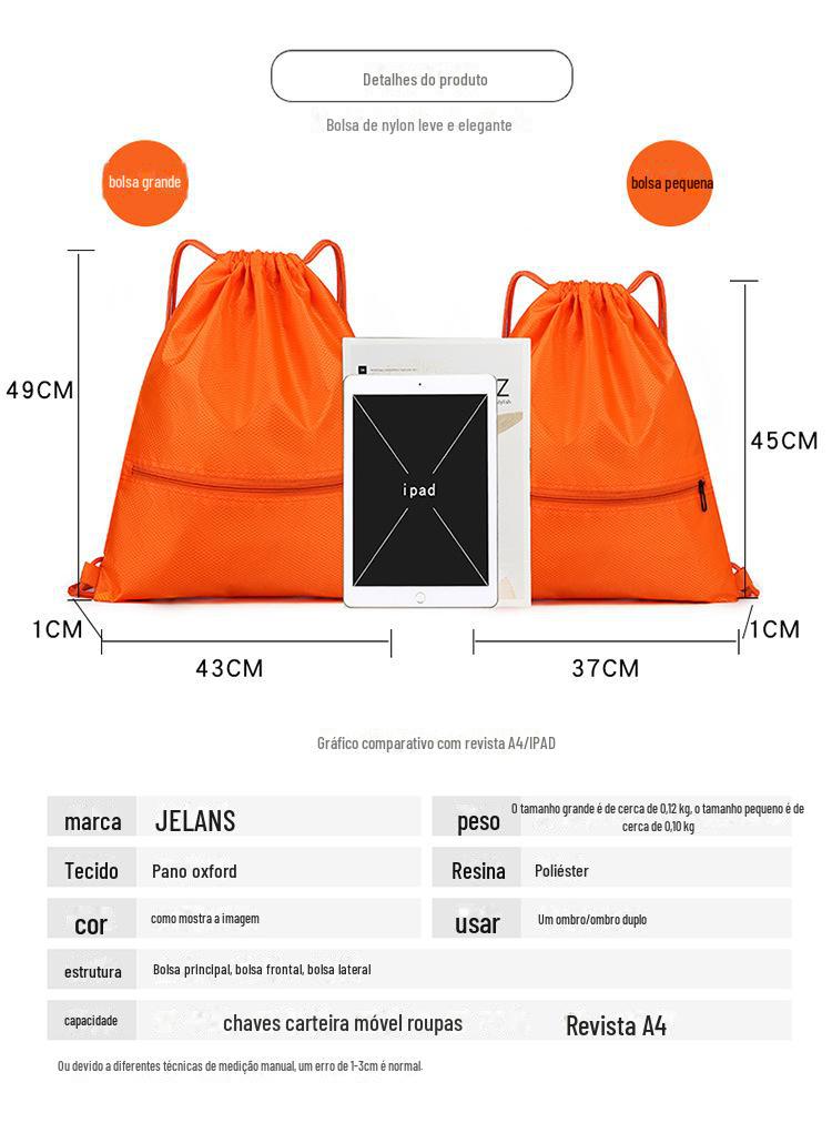 Mochila com cordão e bolso para mochila, mochila esportiva simples e leve para homens e mulheres, com estampa