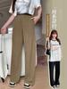 Calças casuais finas das mulheres plus size cintura alta drapeado grosso estilo preguiçoso simples calça de perna larga calça reta casual