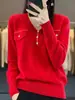 Versátil V-neck Suéter de lã pura confortável Casual Pullover solto de manga comprida base de malha versátil mulheres suéter engrossado