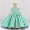2024 europeu e americano novas roupas infantis vestido infantil cor sólida arco flor menina princesa vestido de aniversário do bebê