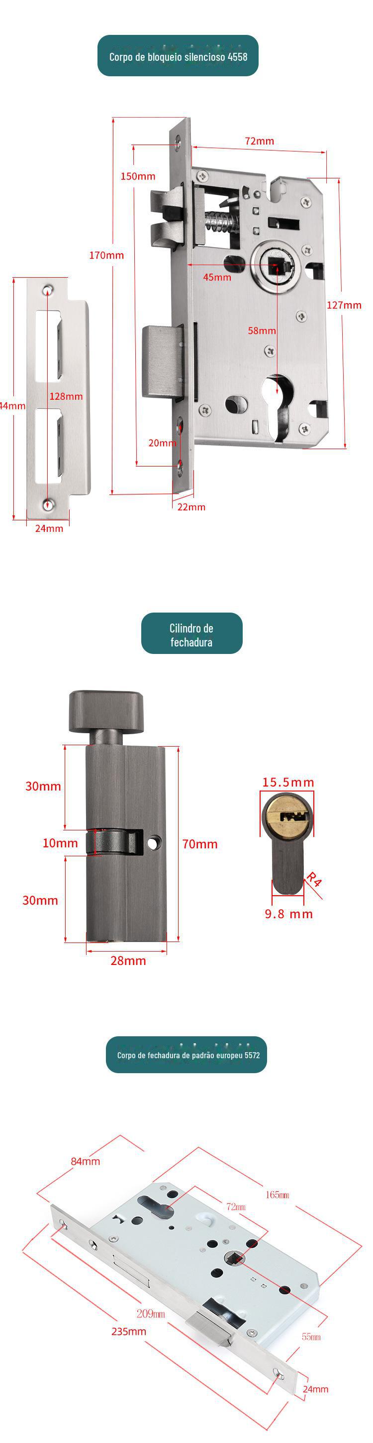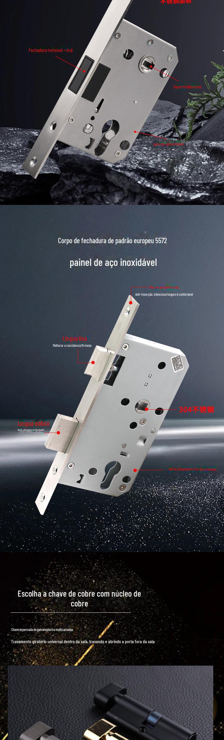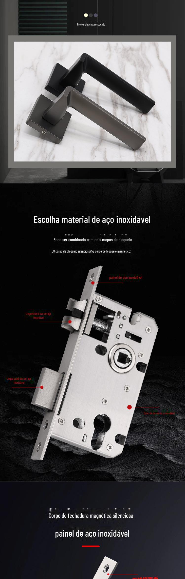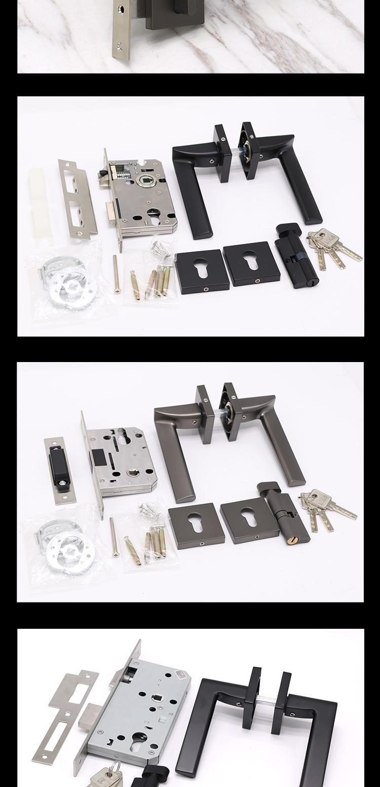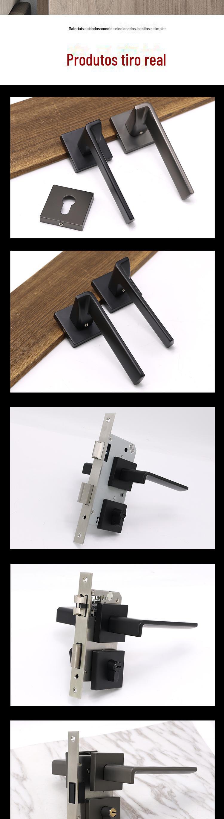 Corpo de fechadura magnética silenciosa de liga de alumínio personalizada, maçaneta dividida, fechadura de porta, estilo europeu, maçaneta de porta interna de banheiro