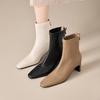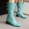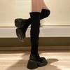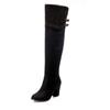 Botas elásticas femininas, botas longas, bico quadrado pequeno, salto alto, camurça, botas longas, vintage, salto grosso, botas justas