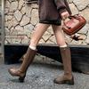 Botas femininas longas, mas com salto alto até o joelho, cano grosso, cano alto, botas de cavaleiro, novas botas finas de salto grosso e cano alto para homens pequenos