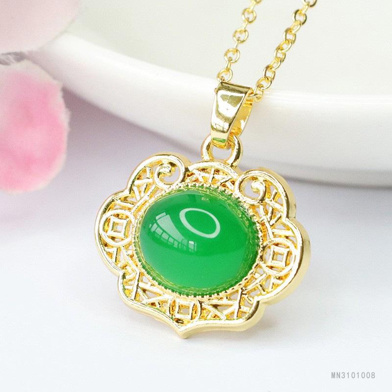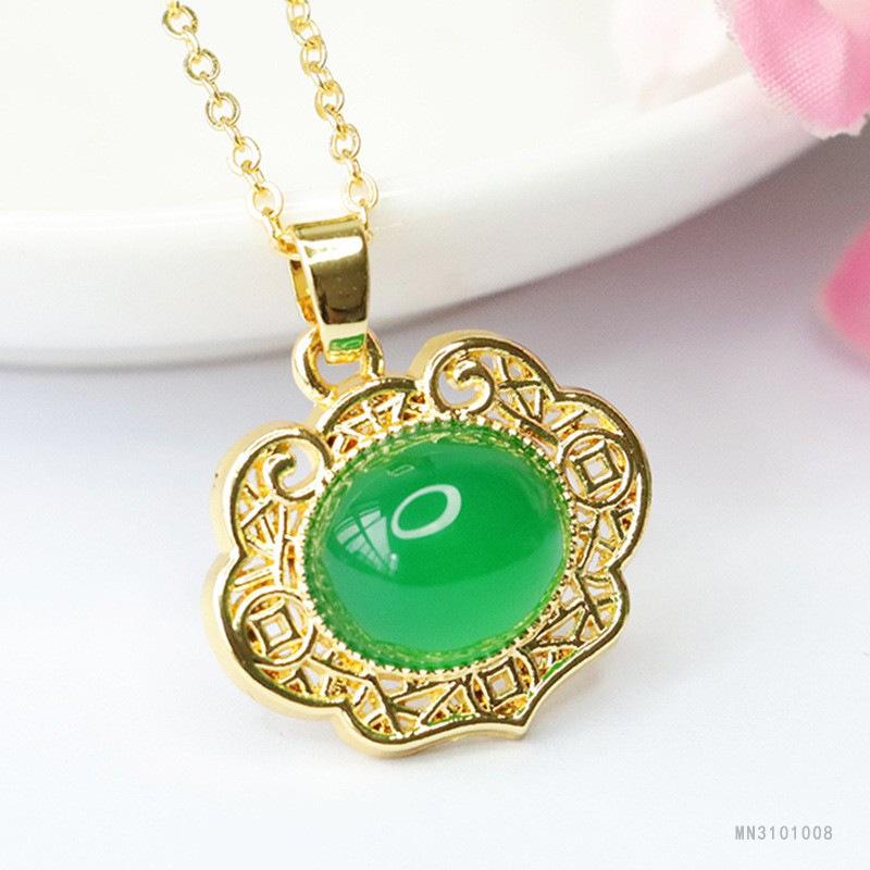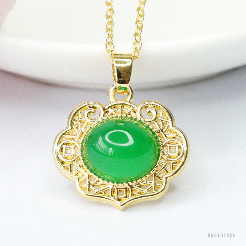 Yuyu Ágata Verde Xiangyun Ruyi Pingente Pó Calcedônia Colar Feminino Fábrica Atacado MN3101008
