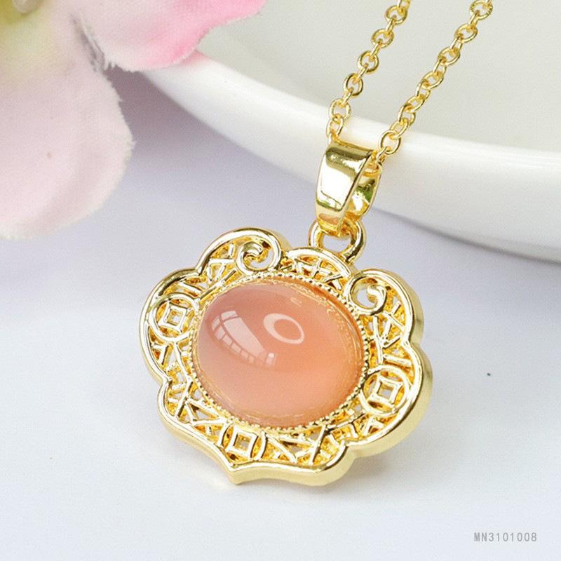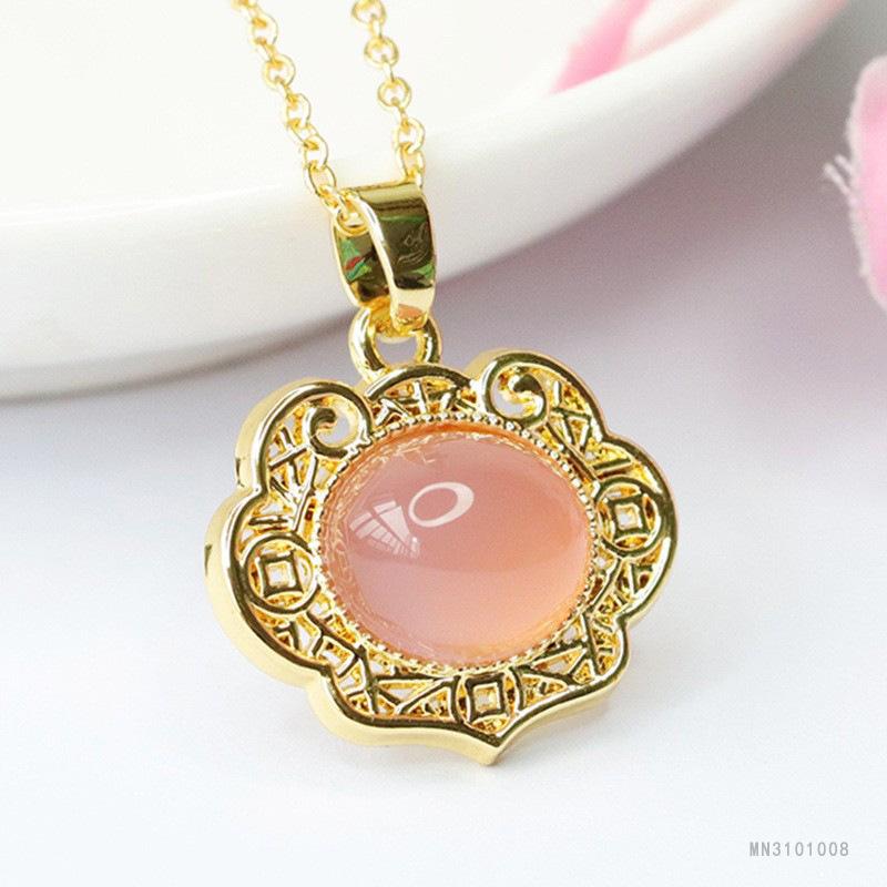 Pink chalcedony auspicious cloud ruyi pendant (without chain) mn3101008