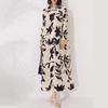 Europeu e americano plissado solto vestido de tamanho grande novo high-end moda elegante degradê mudança de cor pescoço redondo sete pontos manga vestido floral