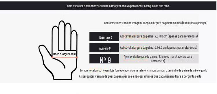Tamanho do produto: 7, 8, 9 (tamanho recomendado para mulheres: 7 ou 8)