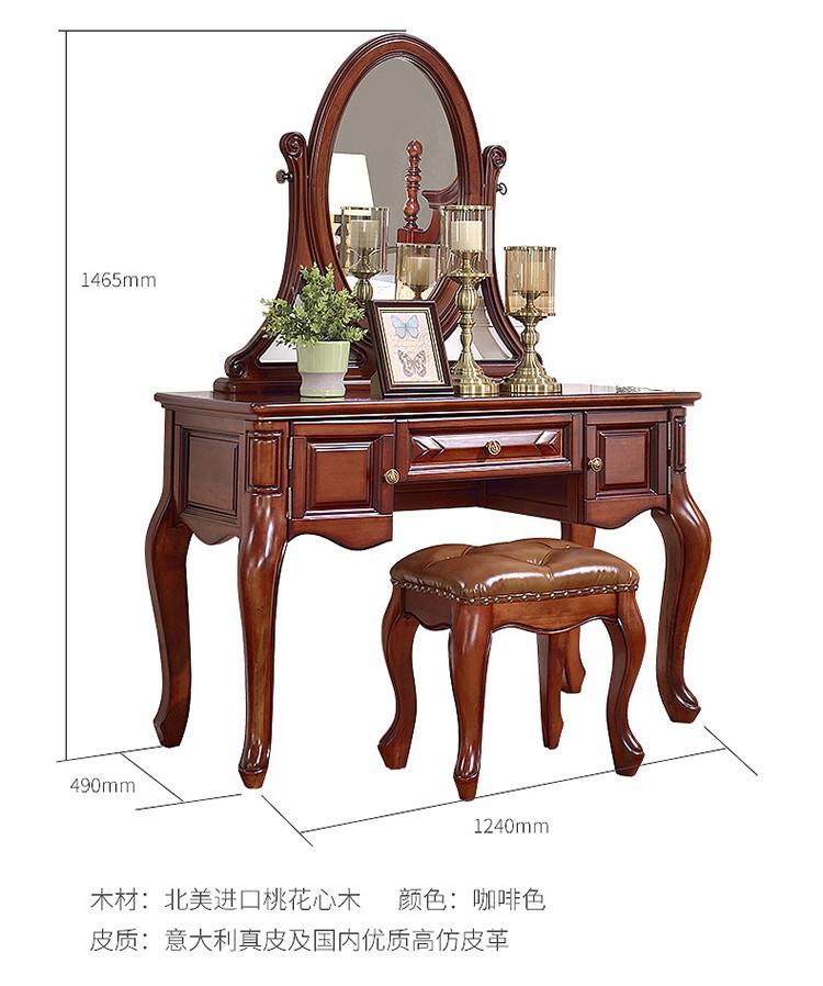 Fábrica direta americana flor de pêssego coração de madeira maciça quarto penteadeira banqueta ins simples grande e pequeno apartamento HD bonito
