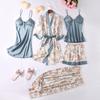 Conjunto de Pijama de Cinco Peças com Cardigã da Moda e Sexy 2026, Gola Redonda, Casual e Simples, Feminino Fino, Confortável e Respirável