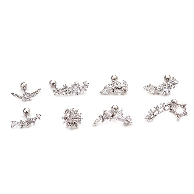| Nome do Produto | 3 novos brincos de cartilagem de aço inoxidável piercing de orelha transfronteiriça estrela de cinco pontas flor zircão brincos com pinos de osso de orelha de bola |
