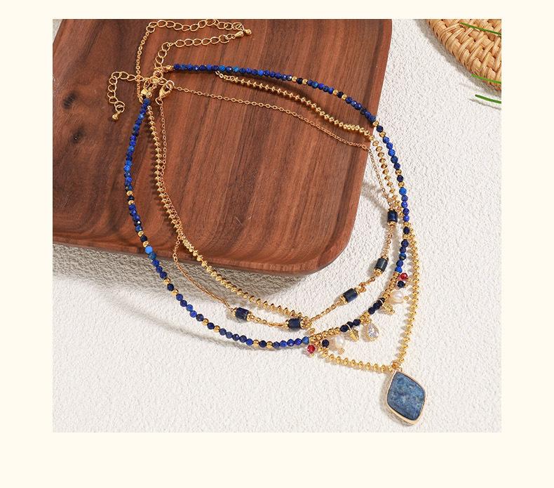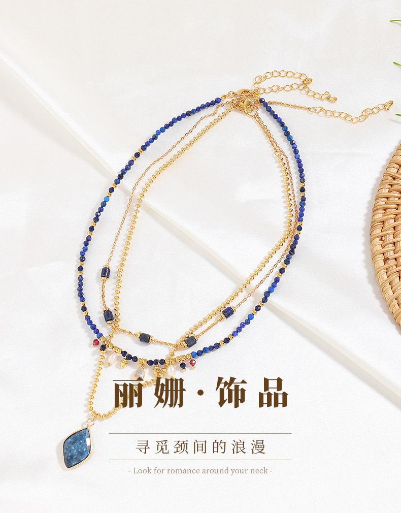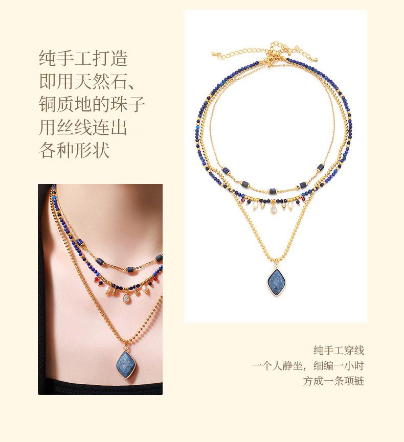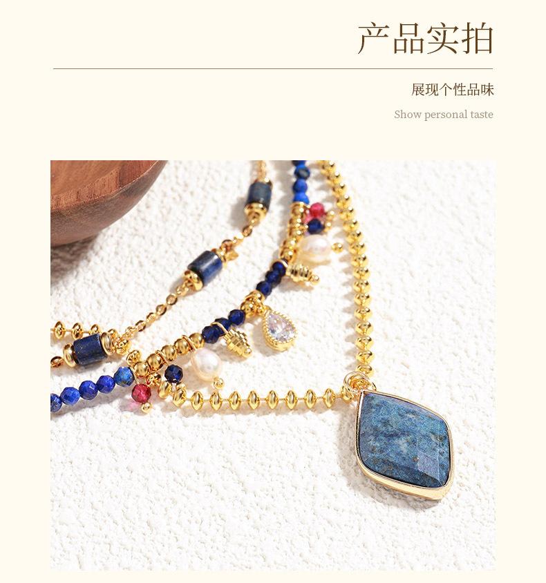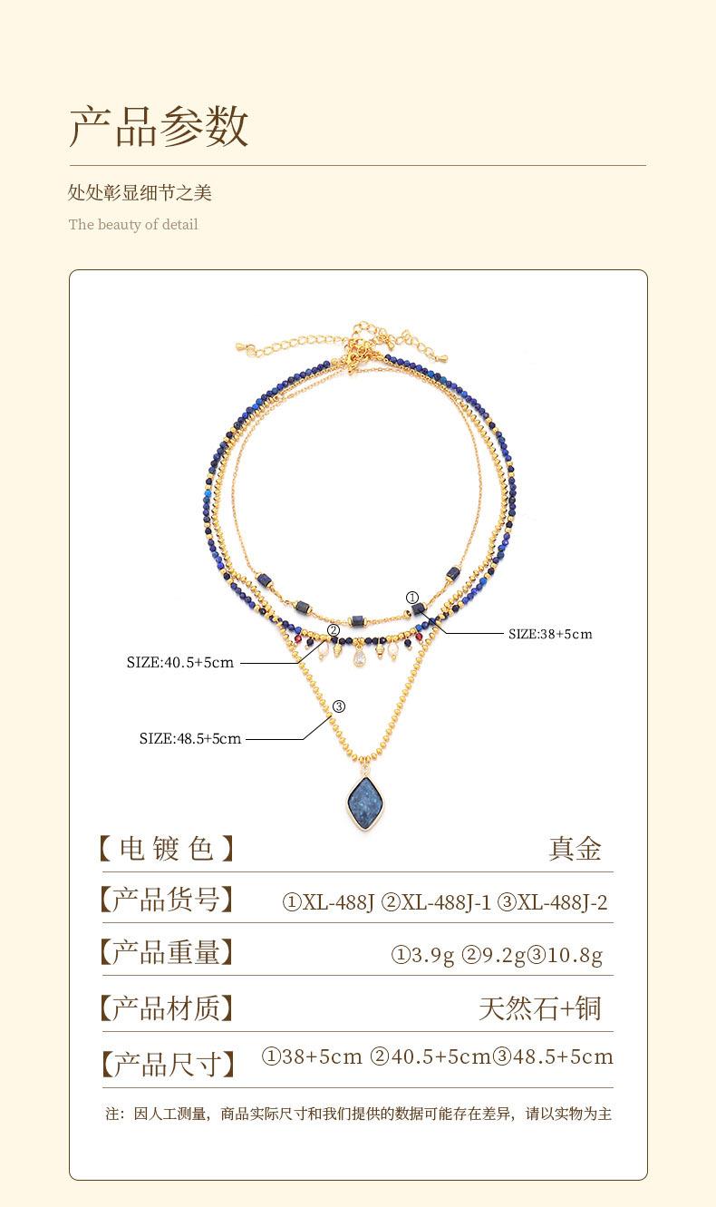 2024 nueva cadena de clavícula con cuentas hechas a mano de piedra natural de alto sentido, collar de ladrillo de diamante chapado en oro de latón