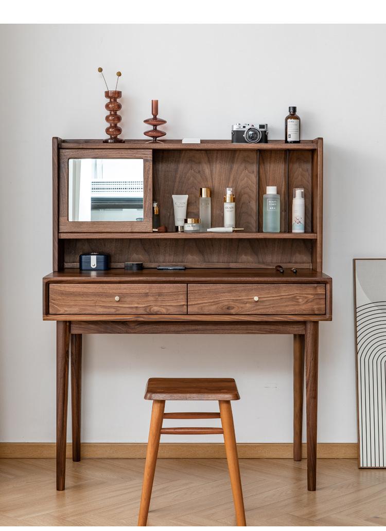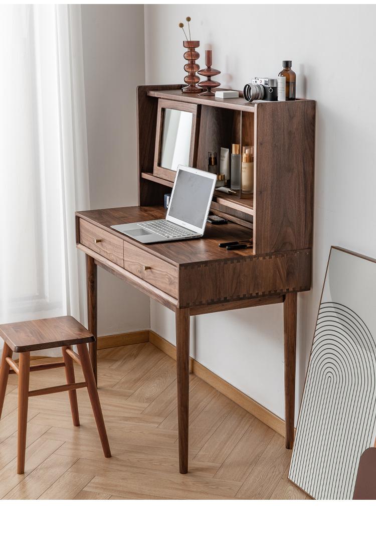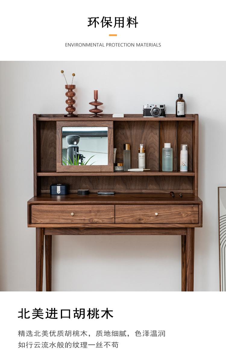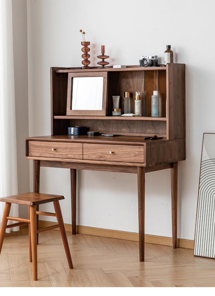 Nórdica preta nogueira madeira maciça maquiagem mesa de vestir moderno simples pequeno apartamento quarto cerejeira madeira pequena mesa