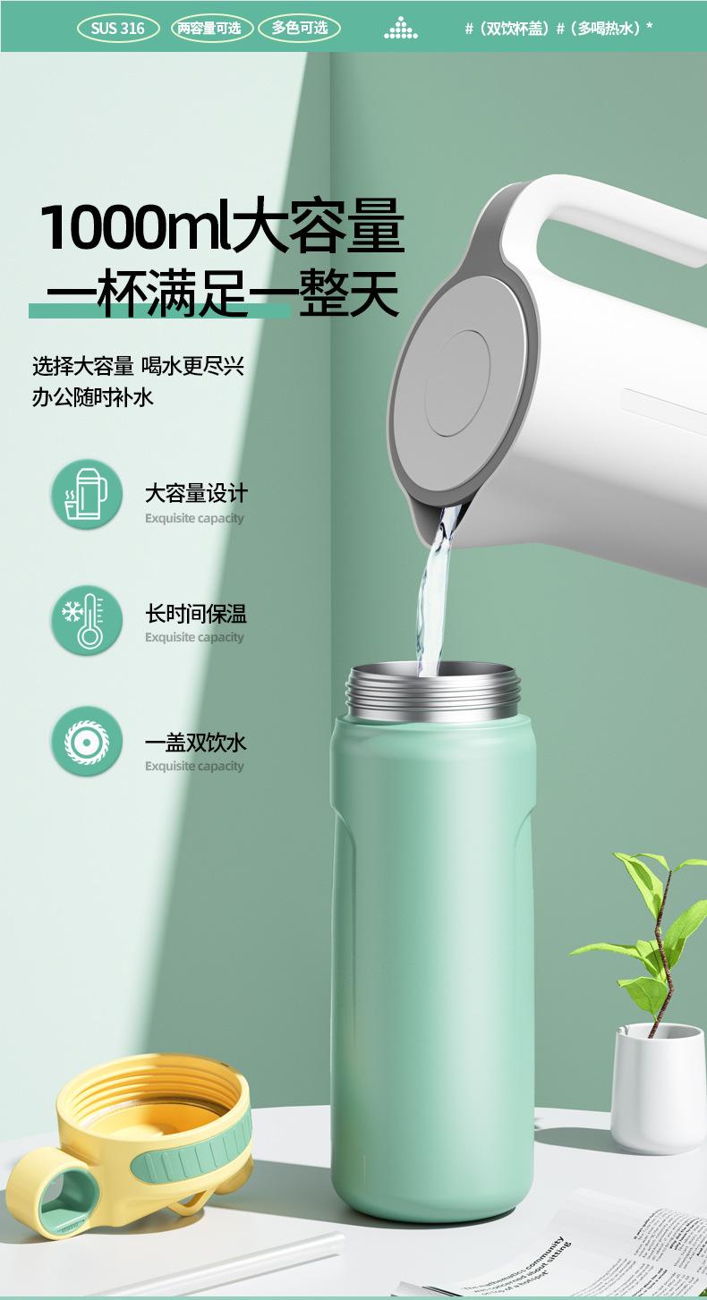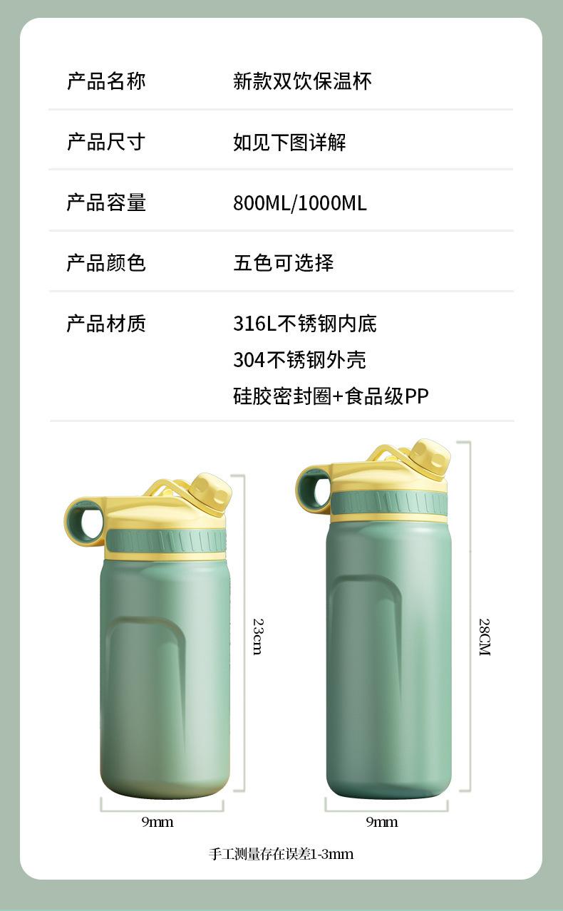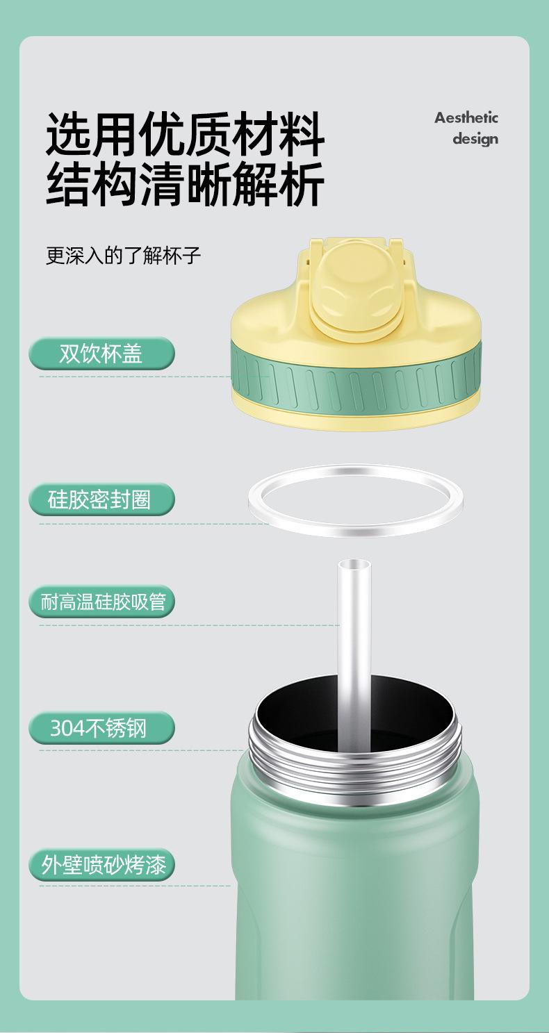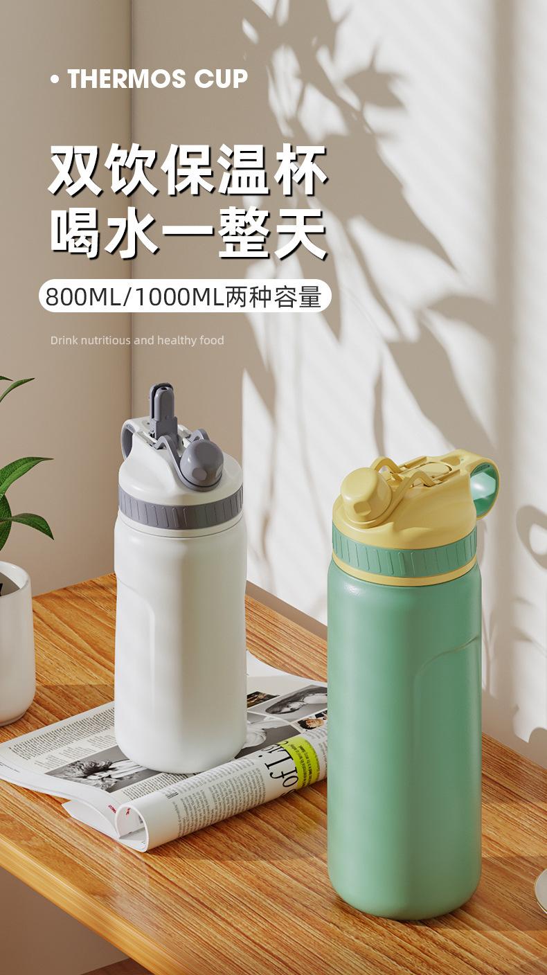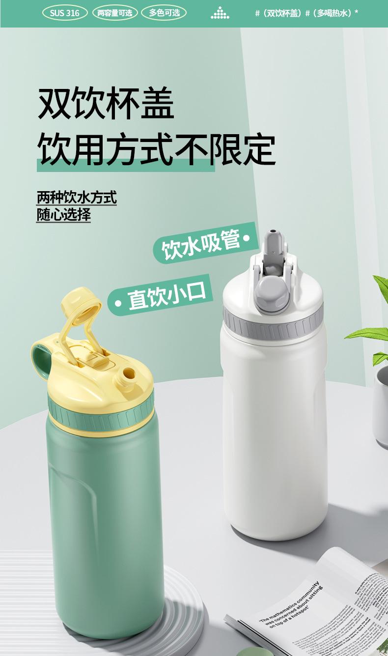 Copo Térmico de Aço Inoxidável 316 de Grande Capacidade Copo com Canudo para Dupla Bebida para Estudante Garrafa de Água para Esportes ao Ar Livre Vácuo Portátil
