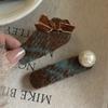 Grampos de cabelo xadrez de alta qualidade com pérolas e laços laterais e franjas, acessórios para cabelo femininos