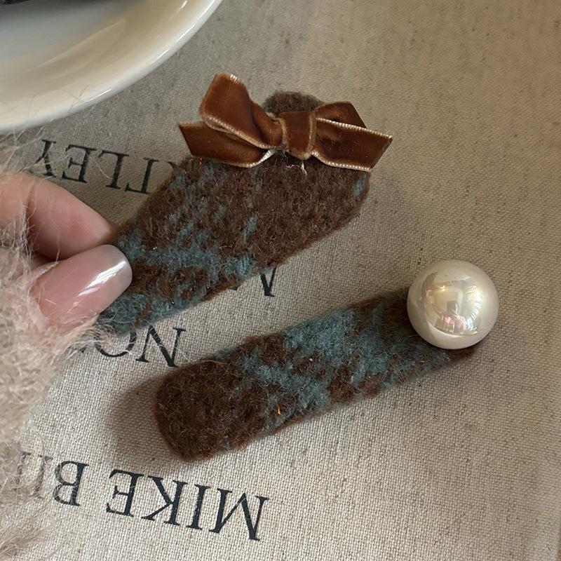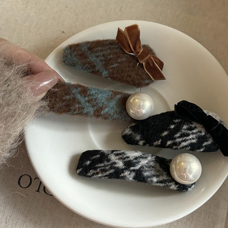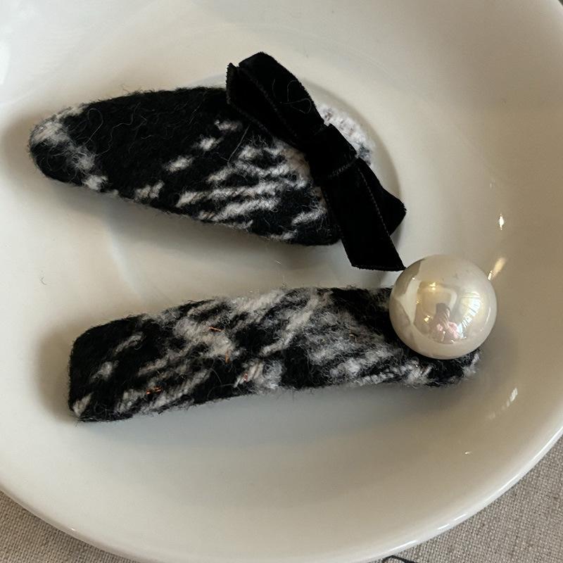 1# black and white texture wool hair clip two-piece set, 3# Korean Powder Maomao Gold Bead Hairpin, 4# black h...