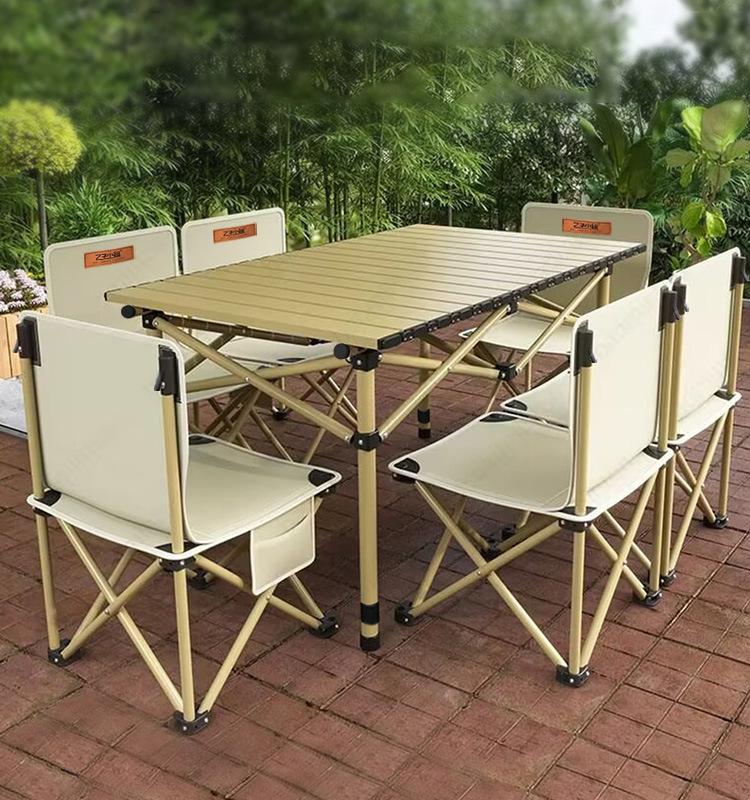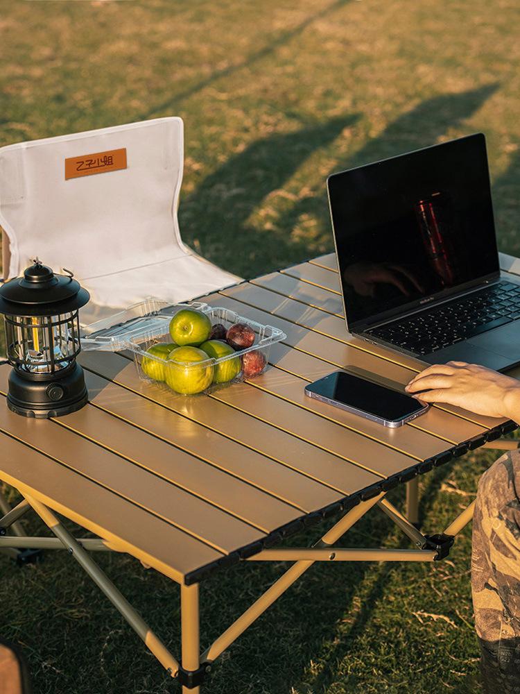 Mesa Dobrável de Exterior Personalizada de Fábrica Conjunto Portátil de Mesa e Cadeiras para Camping Mesa de Enrolar de Alumínio Mesa de Picnic para Camping