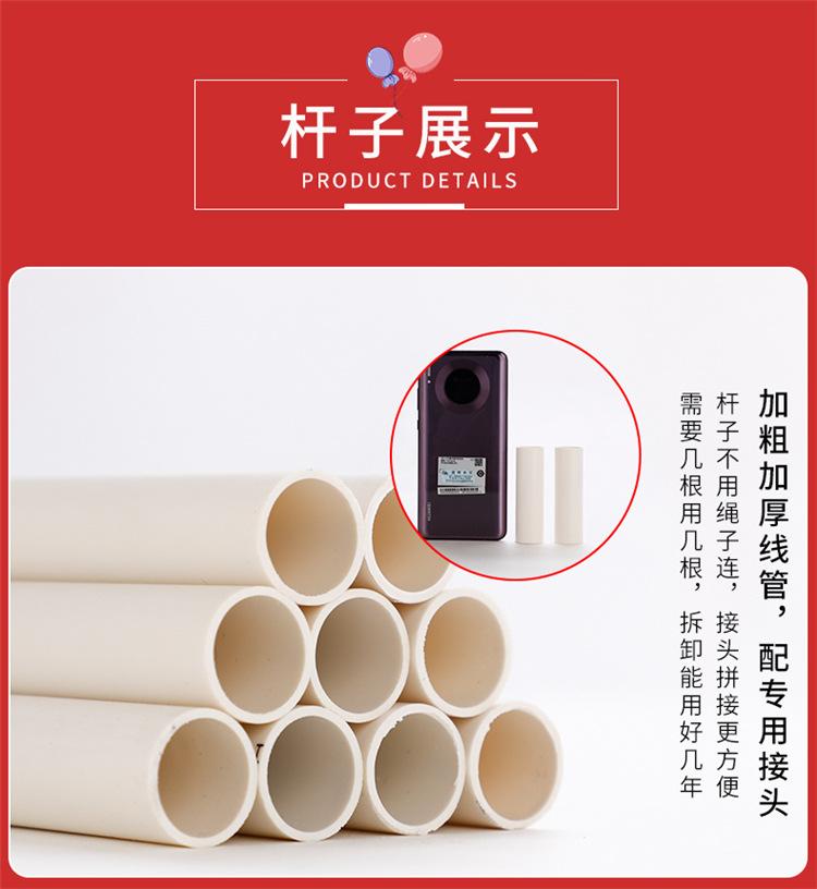 2 white round base +8 PVC pole, 2 white round base +8 PVC pole +50 ring buckle, 2 white round base +10 section...