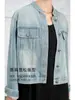 Jaqueta Jeans Curta Retrô Xingge para Mulheres 2025 Outono Novo Estilo Lavada Pequena Gola Alta Casual Cor Clara Solta