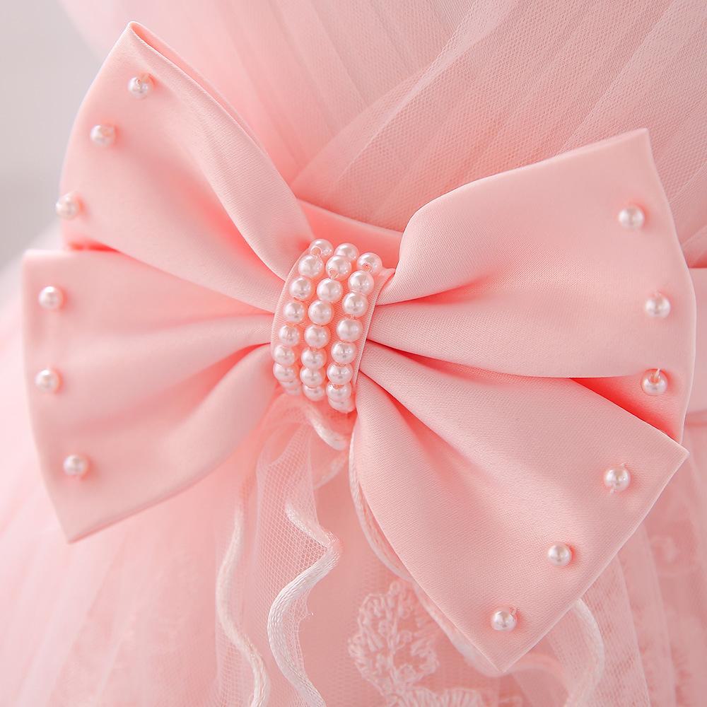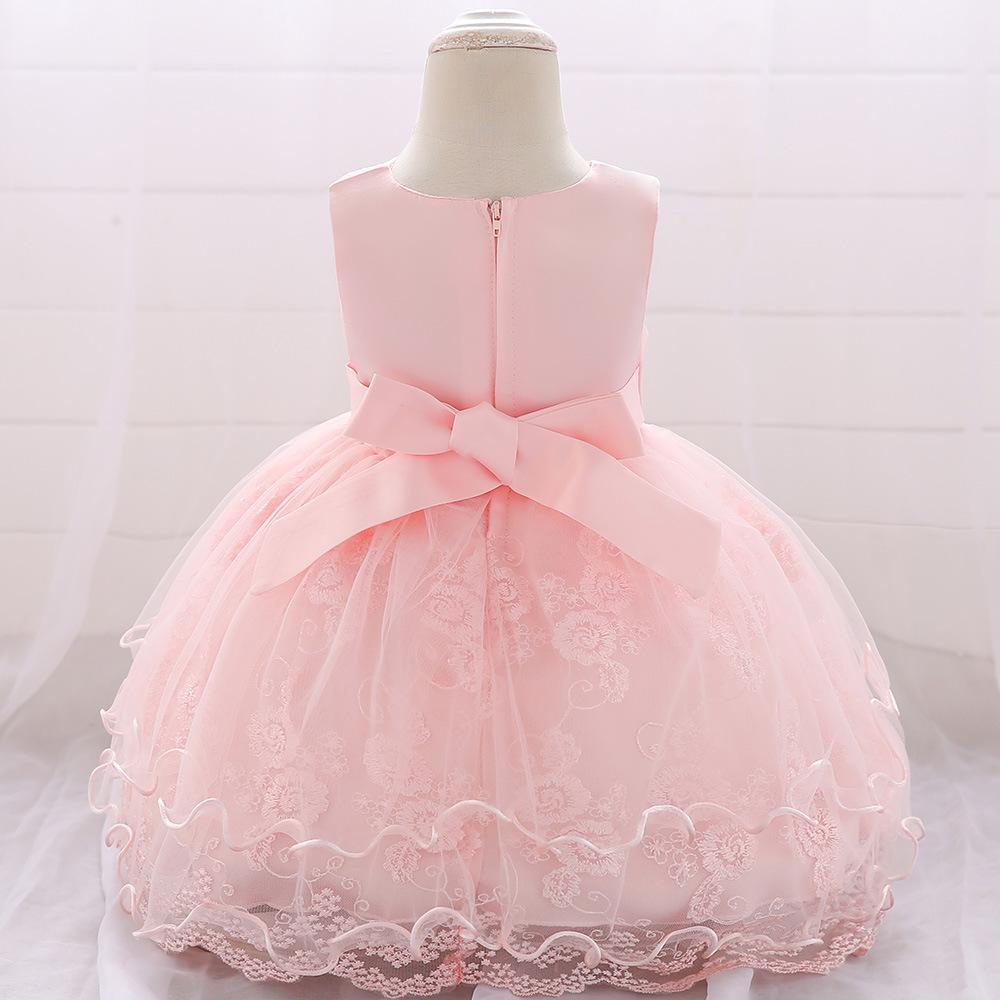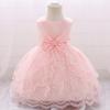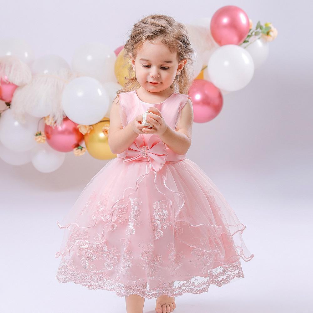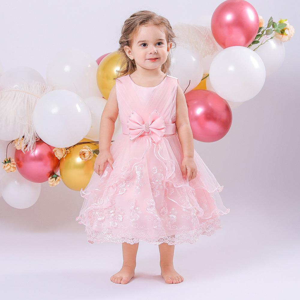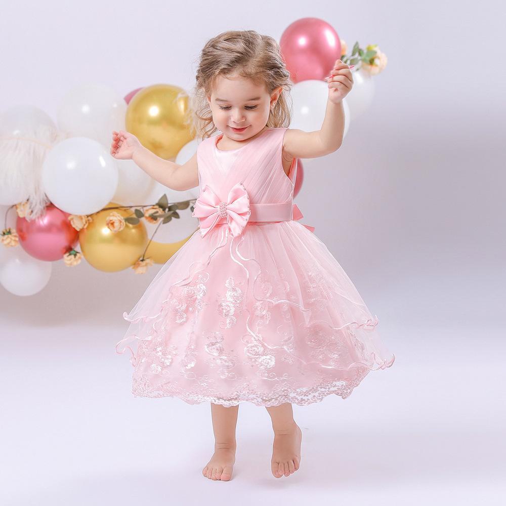 Vestido de princesa de algodão com borda cruzada, vestido de aniversário para bebê, laço, renda, vestido de bebê