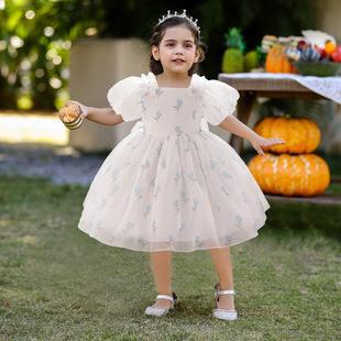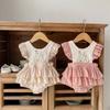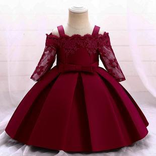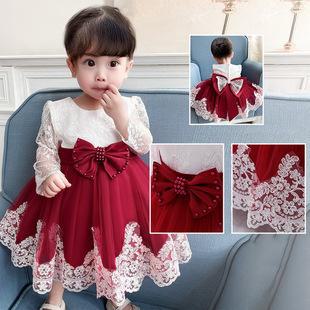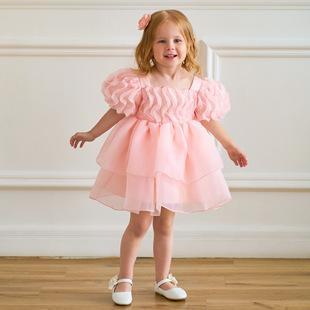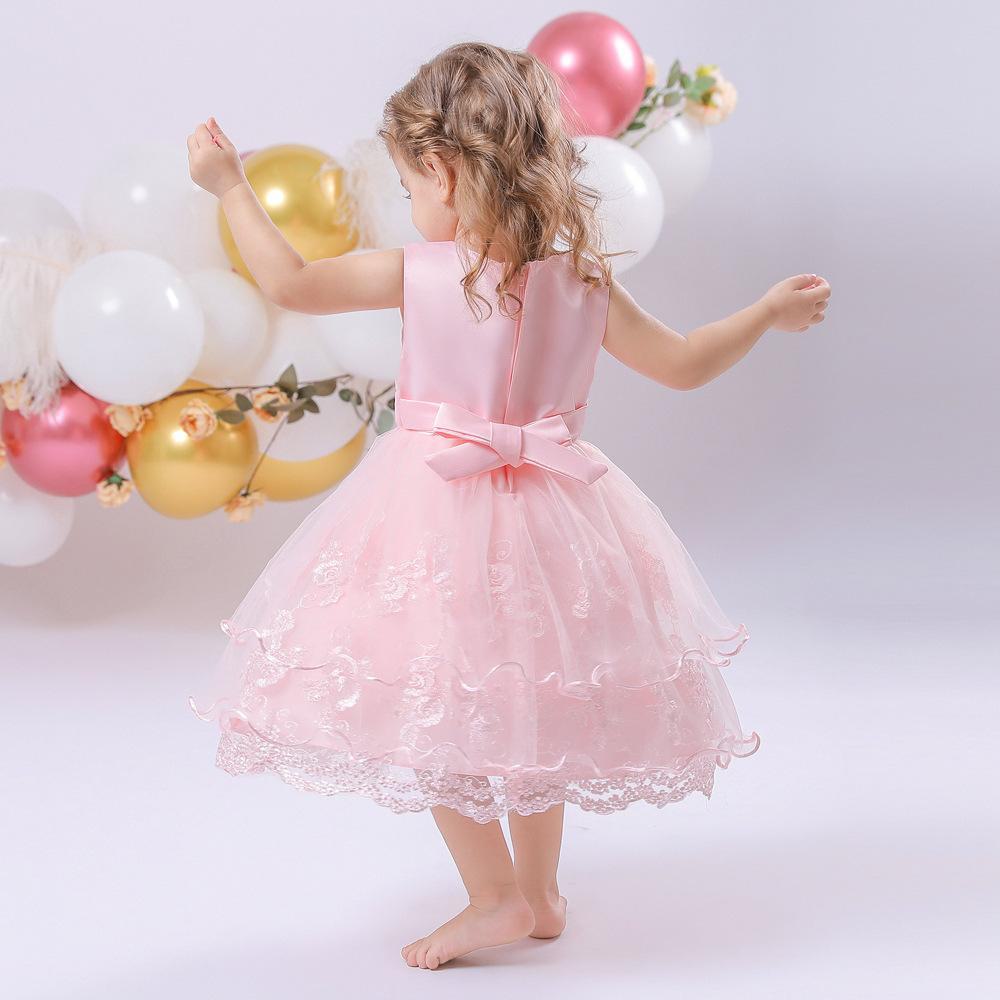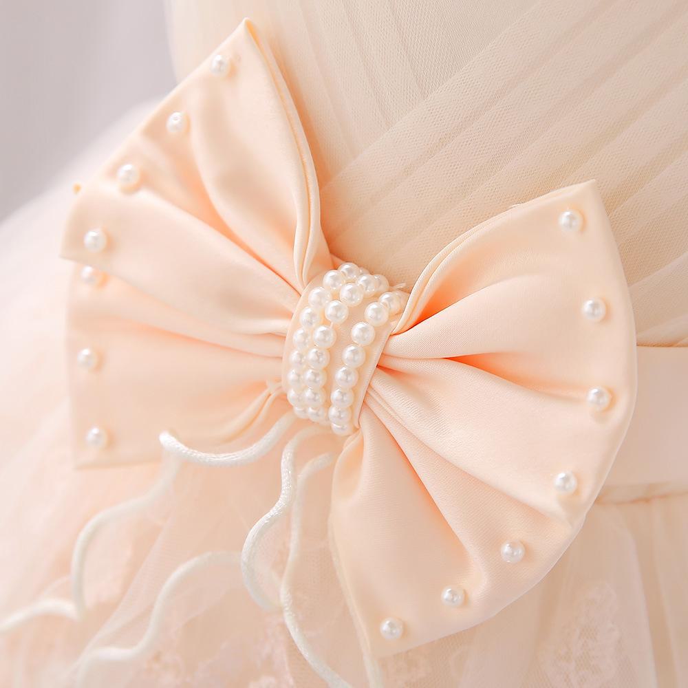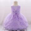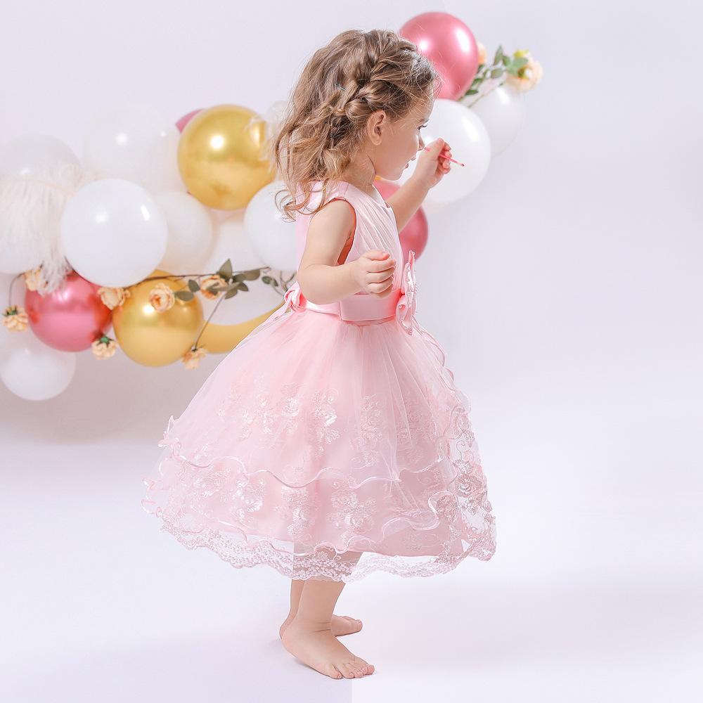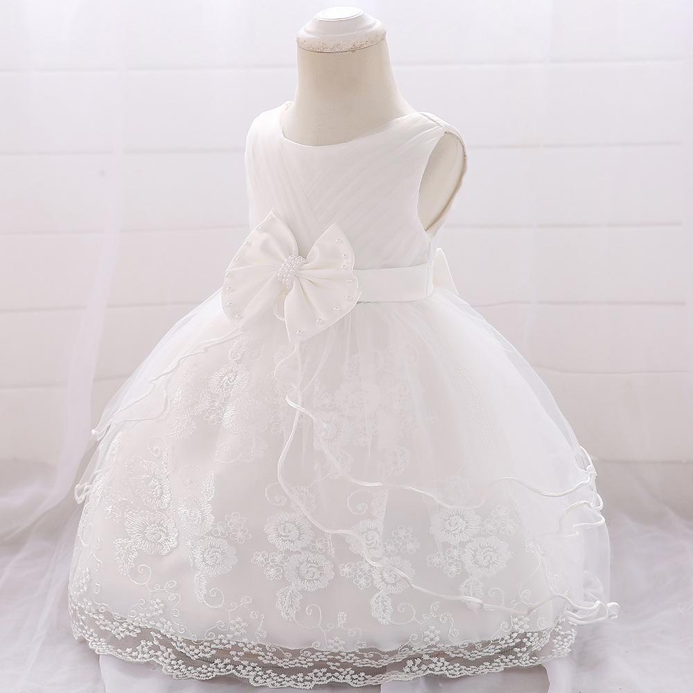 Vestido de princesa de algodão com borda cruzada, vestido de aniversário para bebê, laço, renda, vestido de bebê