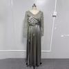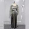Compre 2025 Transfronteiriço Envolto no Peito Babados Vermelho, Preto e Verde Cintura Média Cor Pura Elegante Renda Vestido Longo Vestido de Noite no atacado no Joom.pro