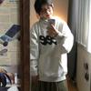 2022 Outono e Inverno Novo Casal Solto Estilo Coreano Suéter de Pescoço Redondo Cartoon Wolf Print Pullover Feminino Casual
