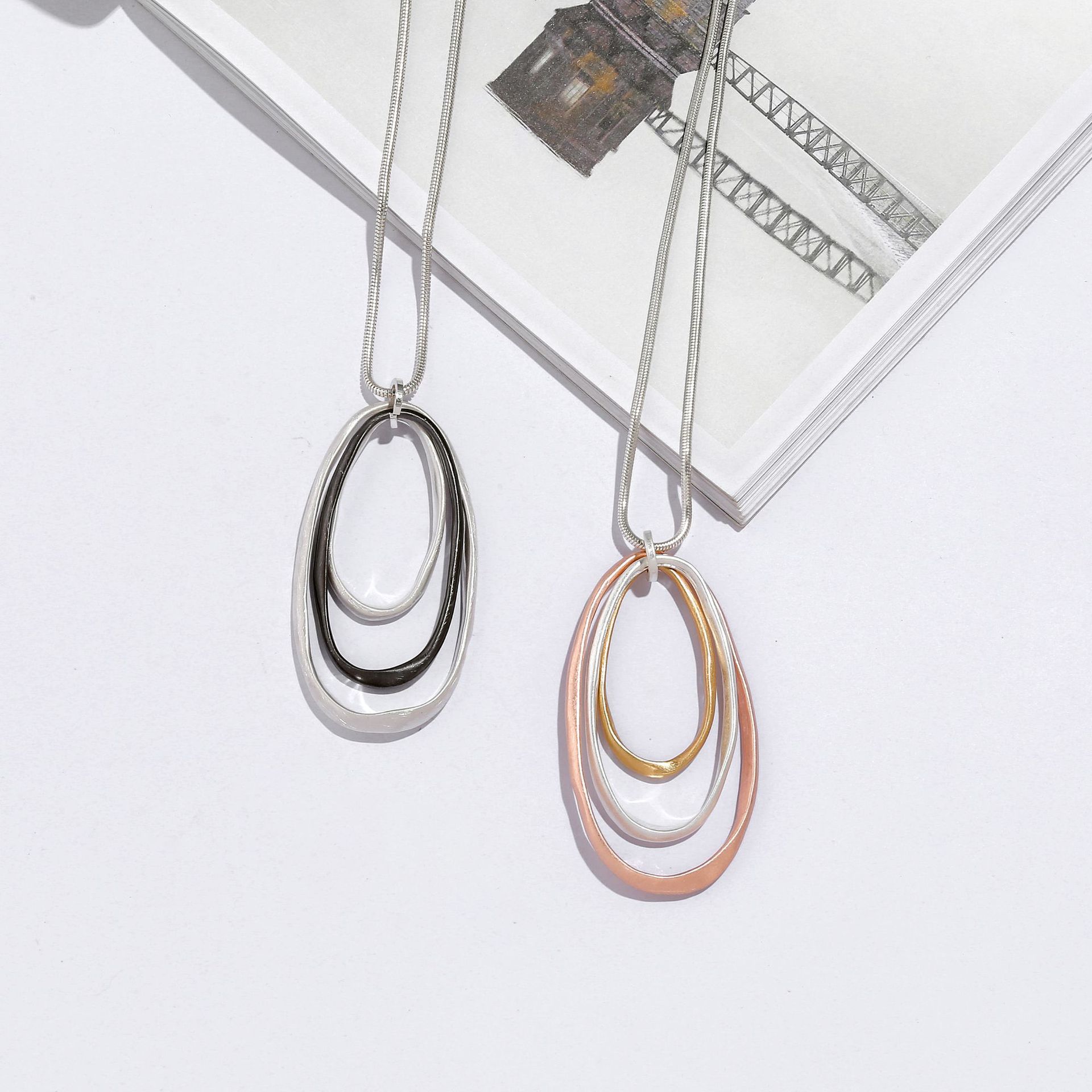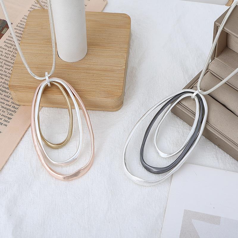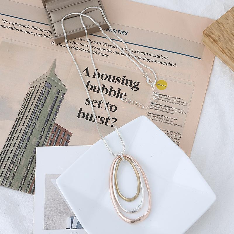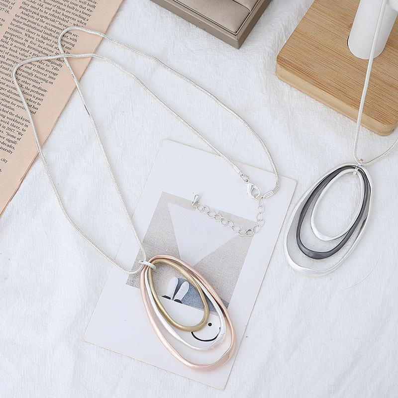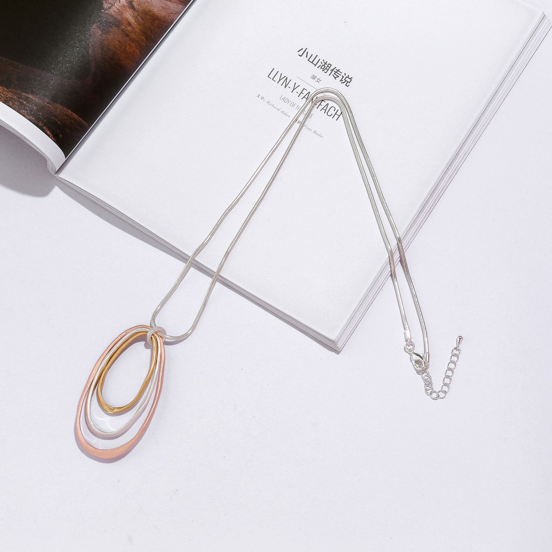 Cross-border Jewelry Amazon Hot Selling Europeu e Americano Retro Longo Colar Geométrico Pingente Feminino Metal Lã Corrente
