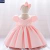Novo bebê criança amazon vestido de noiva menina de manga curta cor sólida forjado vestido de lavagem de pano bebê de um ano de idade vestido de princesa