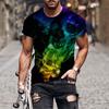 Primavera Exportação Nova Camiseta Masculina de Manga Curta com Estampa de Caveira 3D Gola Redonda Europeia e Americana Transfronteiriça Personalizada Casual Roupa Masculina