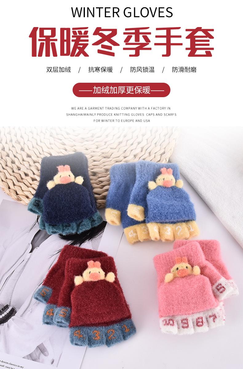 Luvas infantis femininas quentes de inverno, de malha, meio dedo, dobráveis, dupla função, para estudantes, meninos, jardim de infância, luvas para bebês