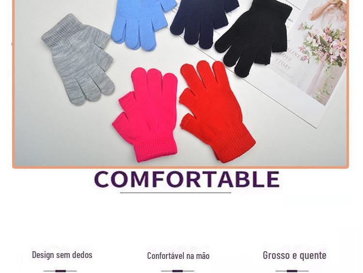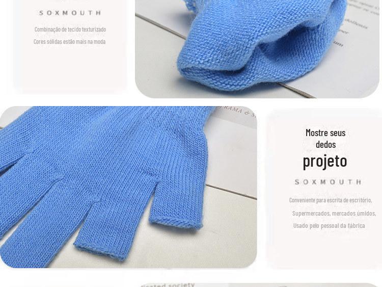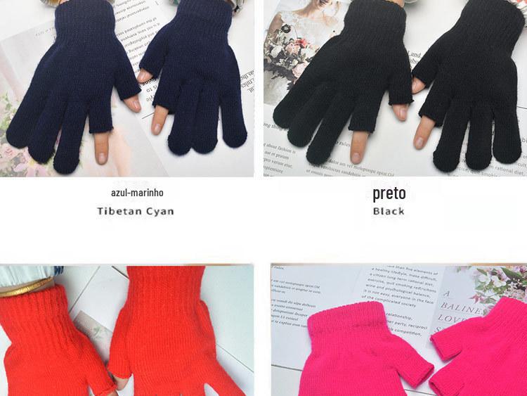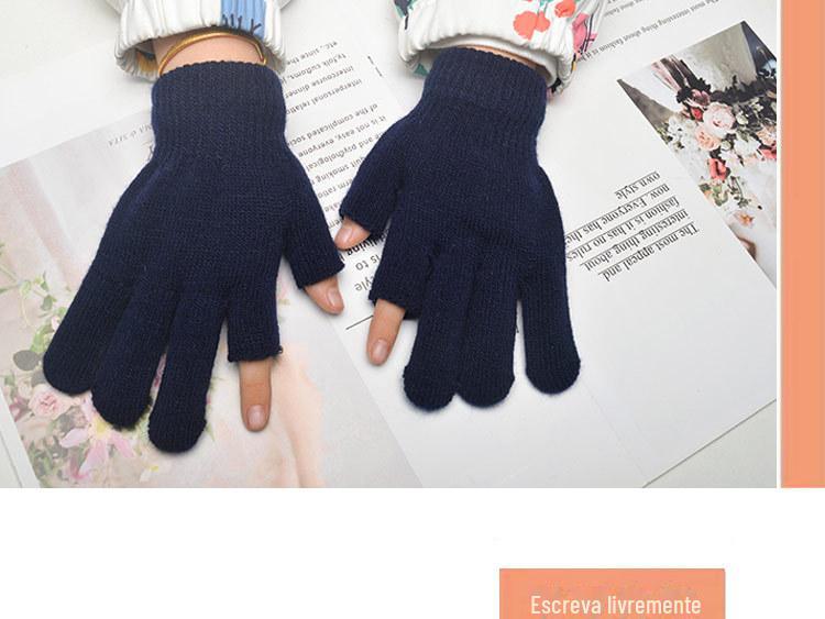 Luvas de dois dedos expostas para meninos e meninas estudantes de outono e inverno escrevendo mais veludo lã luvas quentes sem dedos tela sensível ao toque dos homens