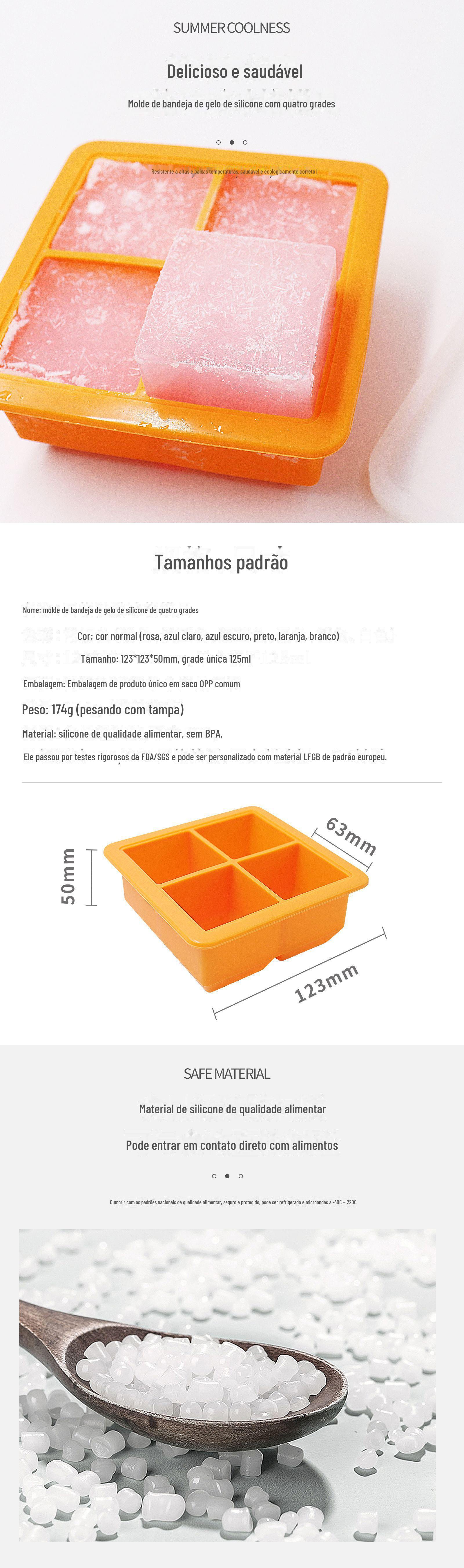 Recomendado pela fábrica em estoque com tampa para 4 cubos de gelo de silicone, molde de gelo de silicone, utensílios de cozinha criativos para cubos de gelo