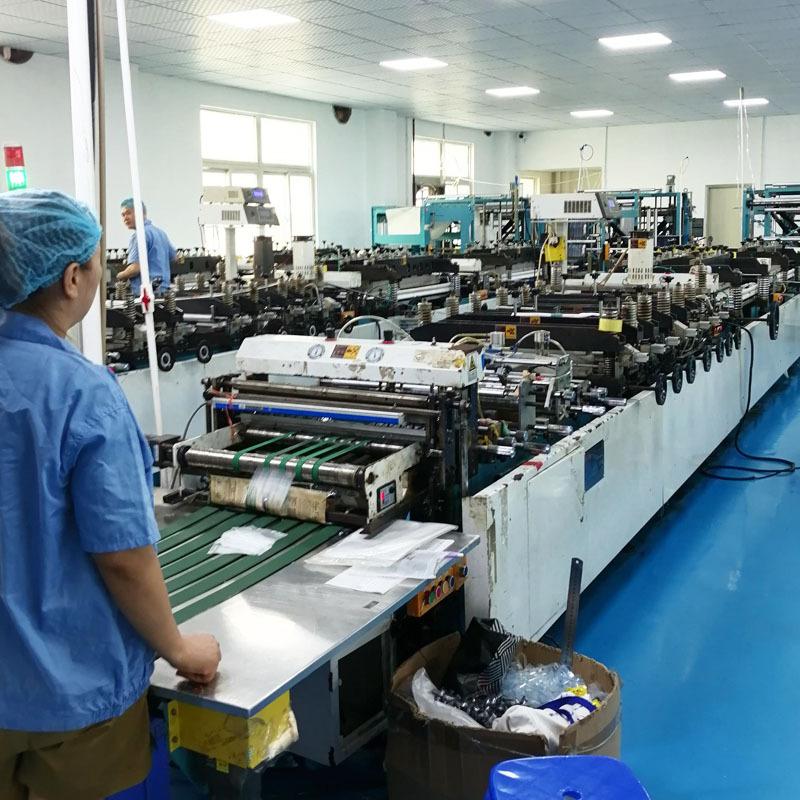 Utilizamos uma ampla gama de equipamentos de produção, incluindo sopro de filme, impressão, laminação, fabricação de sacos e outros equipamentos.