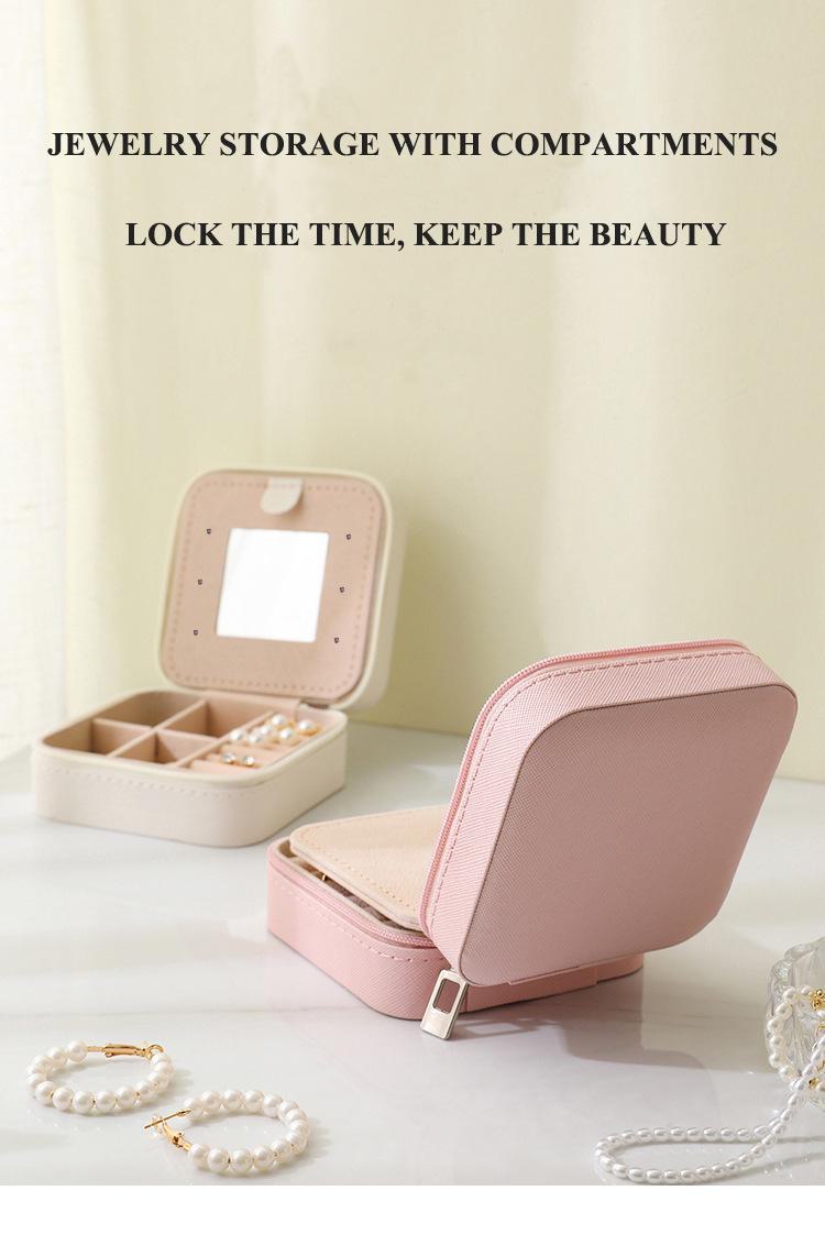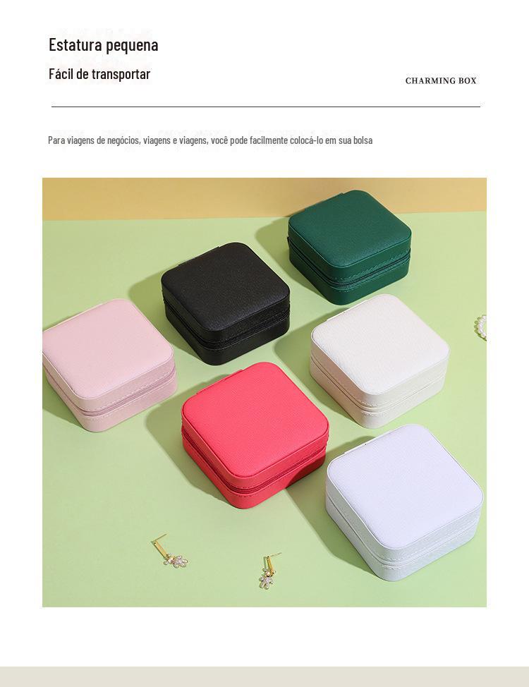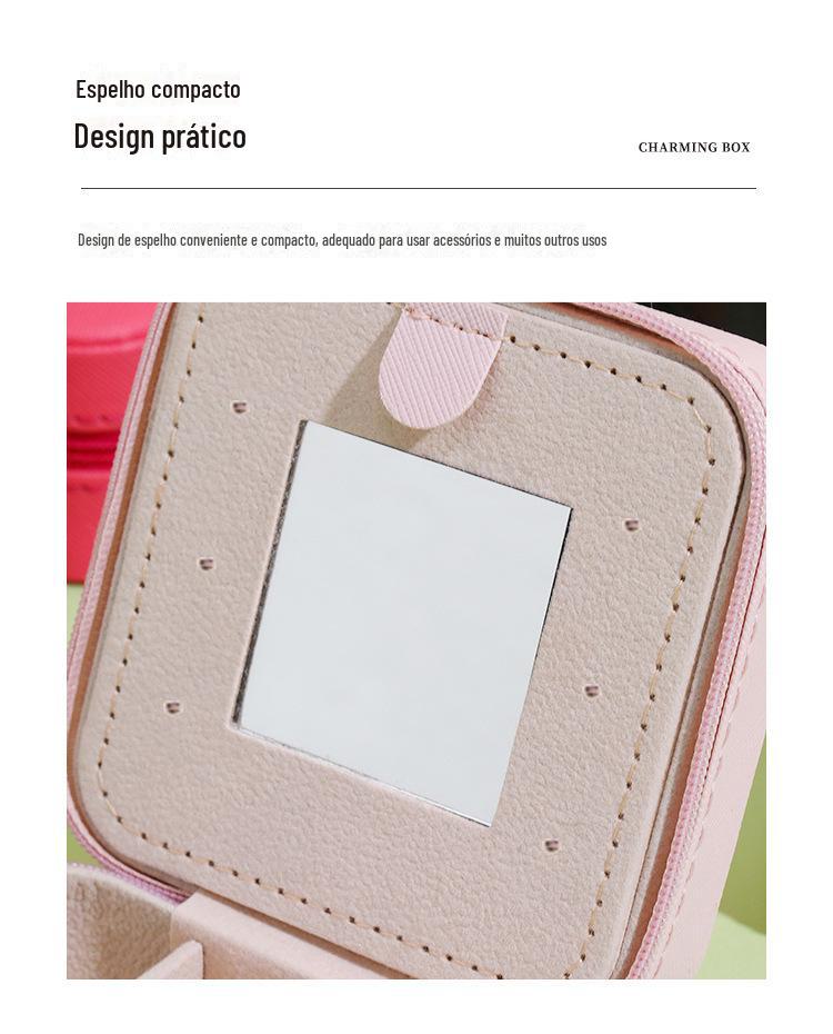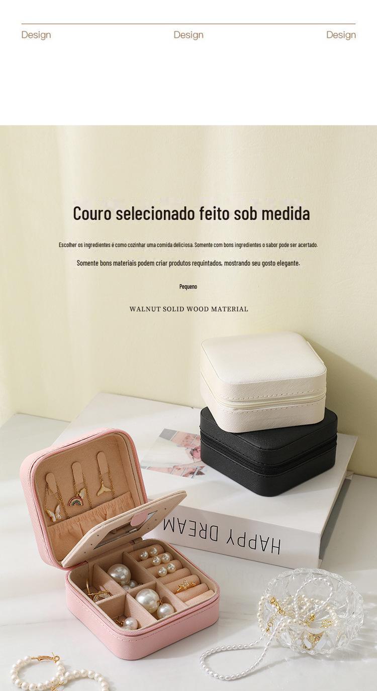 Caixa de joias portátil para armazenamento de brincos, colares e anéis, caixa de joias antioxidação, caixa de armazenamento de joias com espelho