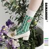 Meias femininas de personalidade para estudantes, primavera e verão, estampadas em francês, respiráveis, absorventes de suor, meias de algodão penteado de cano médio