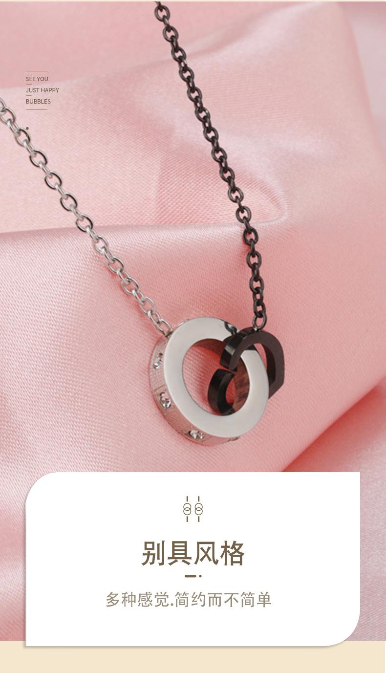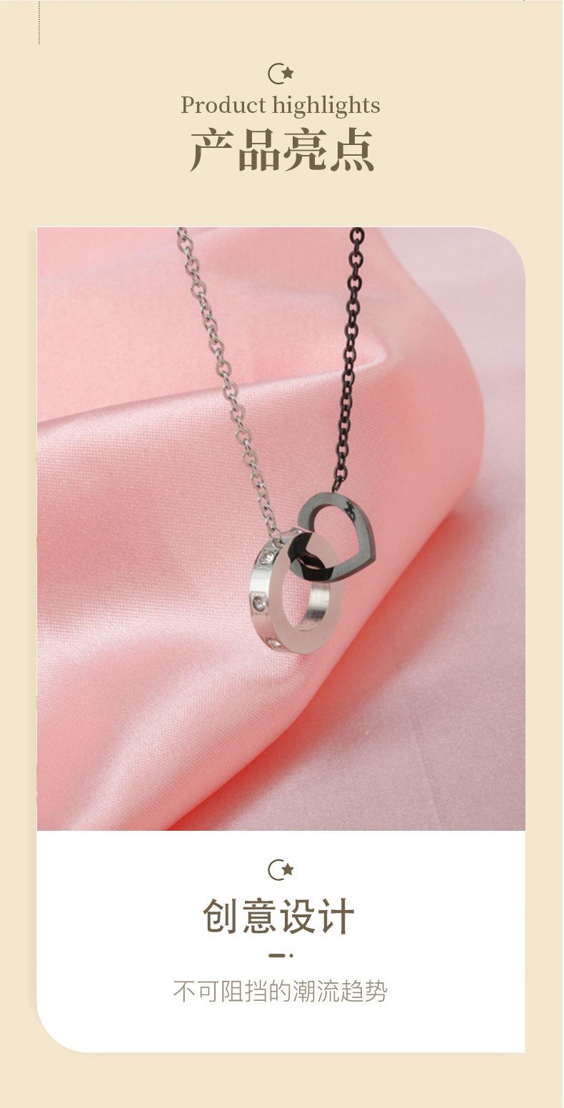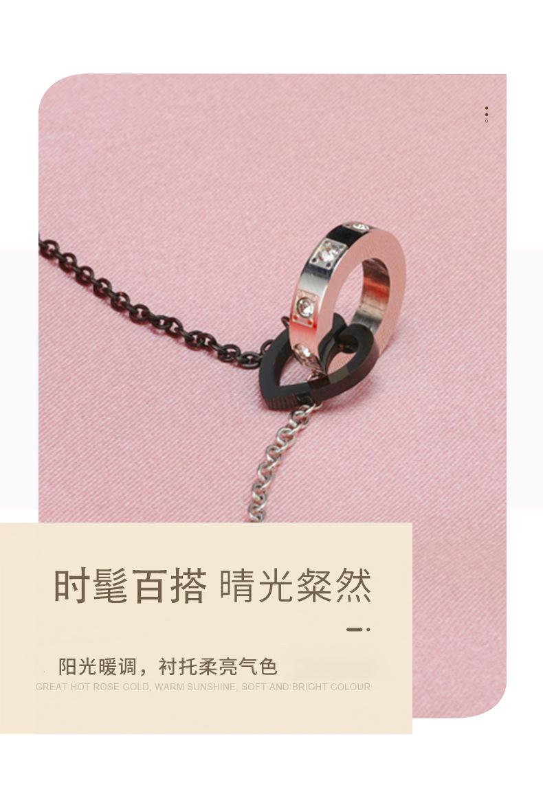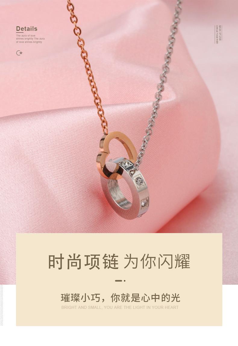 Internet Celebridade Temperamento Colar Rosa Ouro Duplo Anel Coração Círculo Clavícula Cadeia Titânio Aço Carta Casal Colar