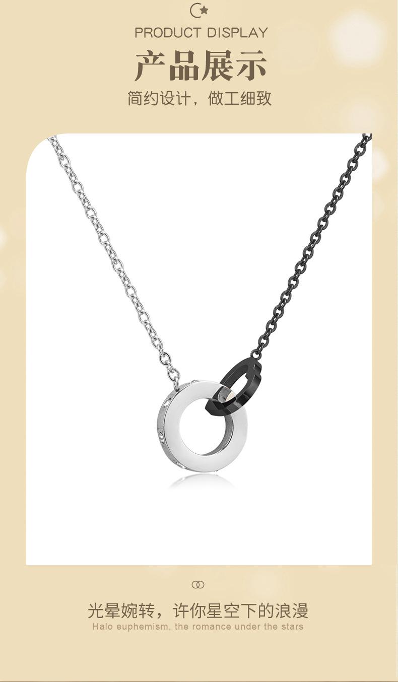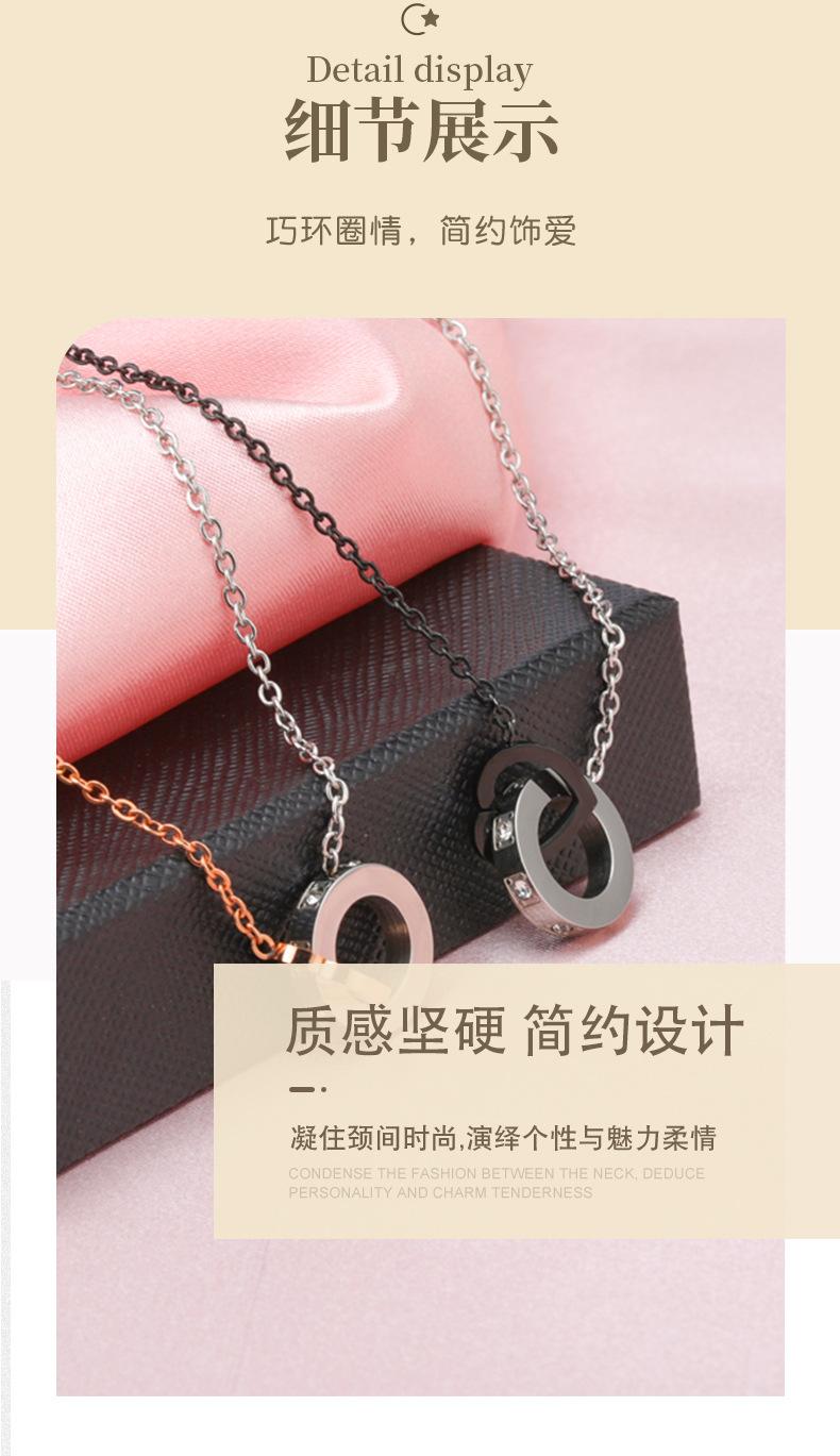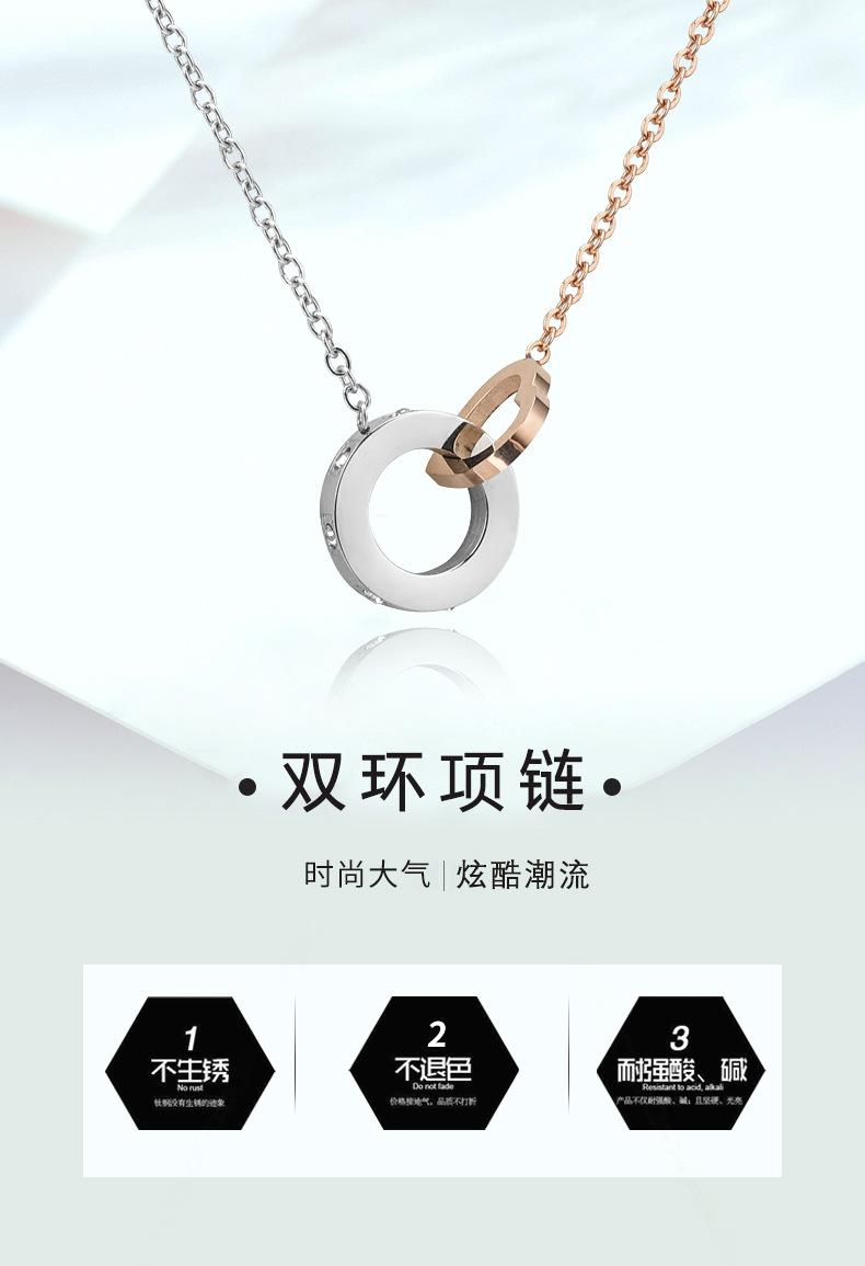 Internet Celebridade Temperamento Colar Rosa Ouro Duplo Anel Coração Círculo Clavícula Cadeia Titânio Aço Carta Casal Colar