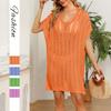2026 Verão Vestido de Praia Feminino Europeu e Americano Transfronteiriço Novo Decote V Cor Sólida Vazado Comércio Exterior Solto Plus Size Cobertura