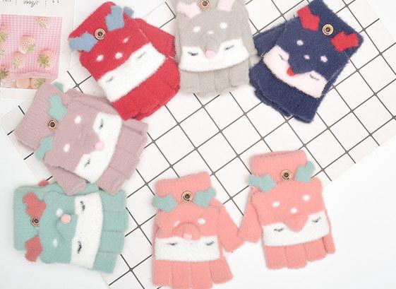 Inverno crianças veludo engrossado 6-12 anos de idade bebê quente à prova de frio bonito luvas de dedo inteiro para meninos e meninas
