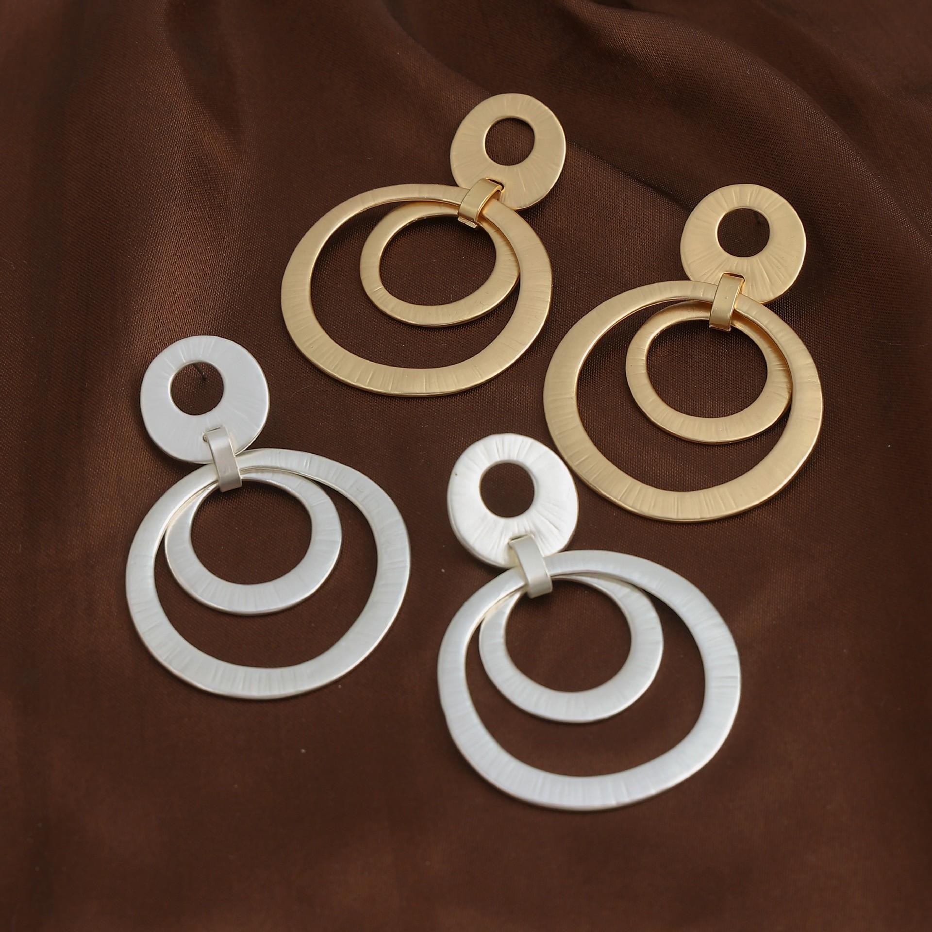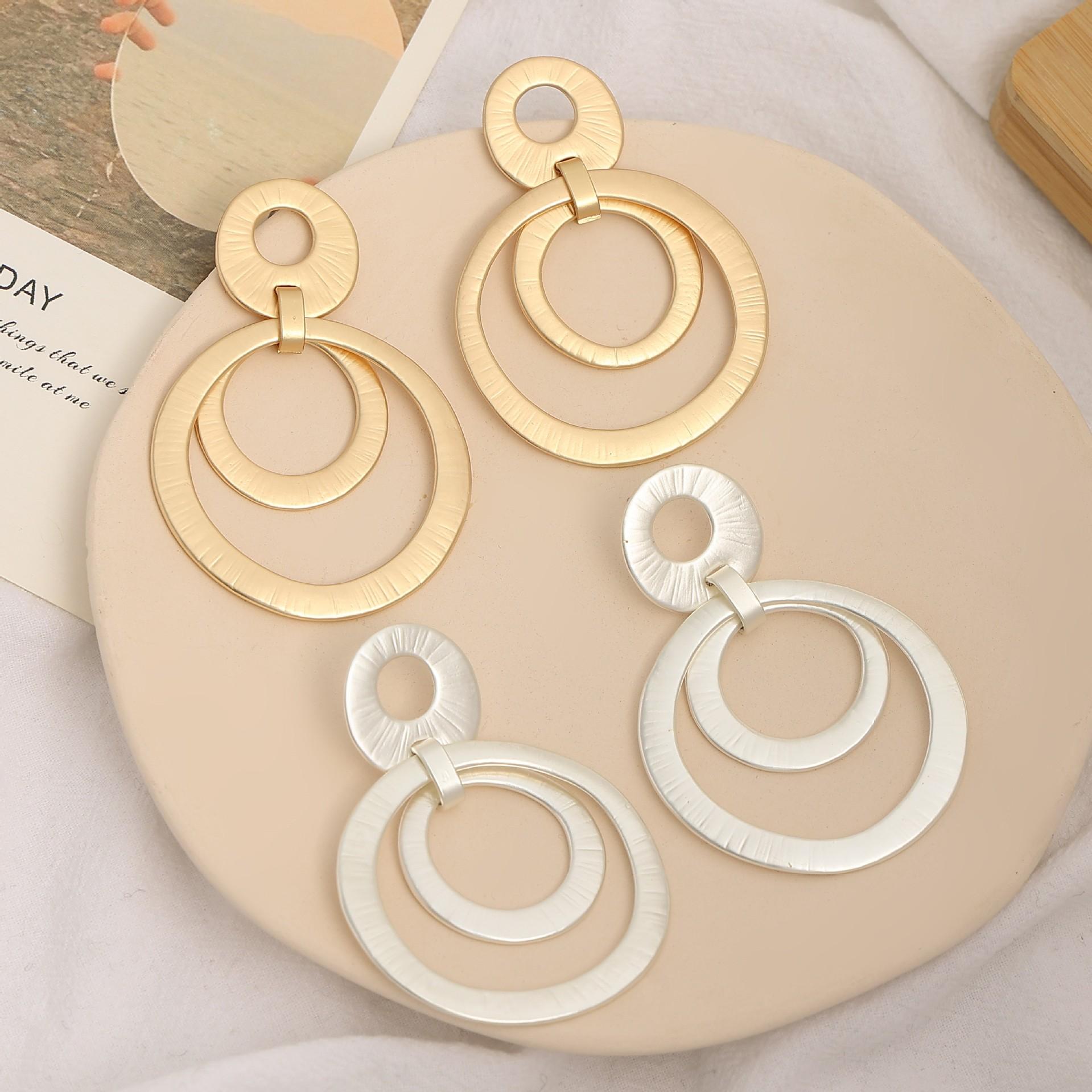 Amazon novos brincos de metal femininos transfronteiriços geométricos redondos de alta qualidade brincos de pino de orelha de comprimento médio atacado