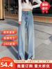 Jeans Vintage de Cintura Alta com Barra Reta para Mulheres, Novo Estilo Verão 2026, Caimento Solto, Emagrecedor, Petite, Calça Pantalona com Fenda