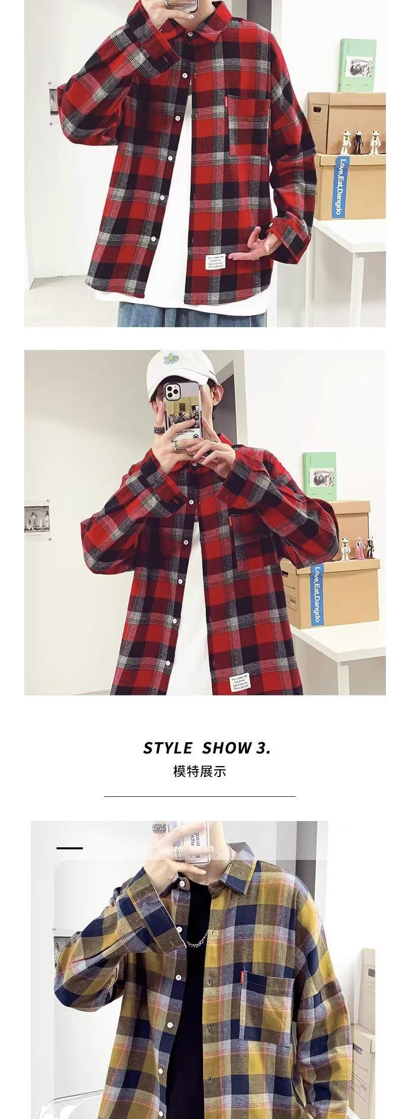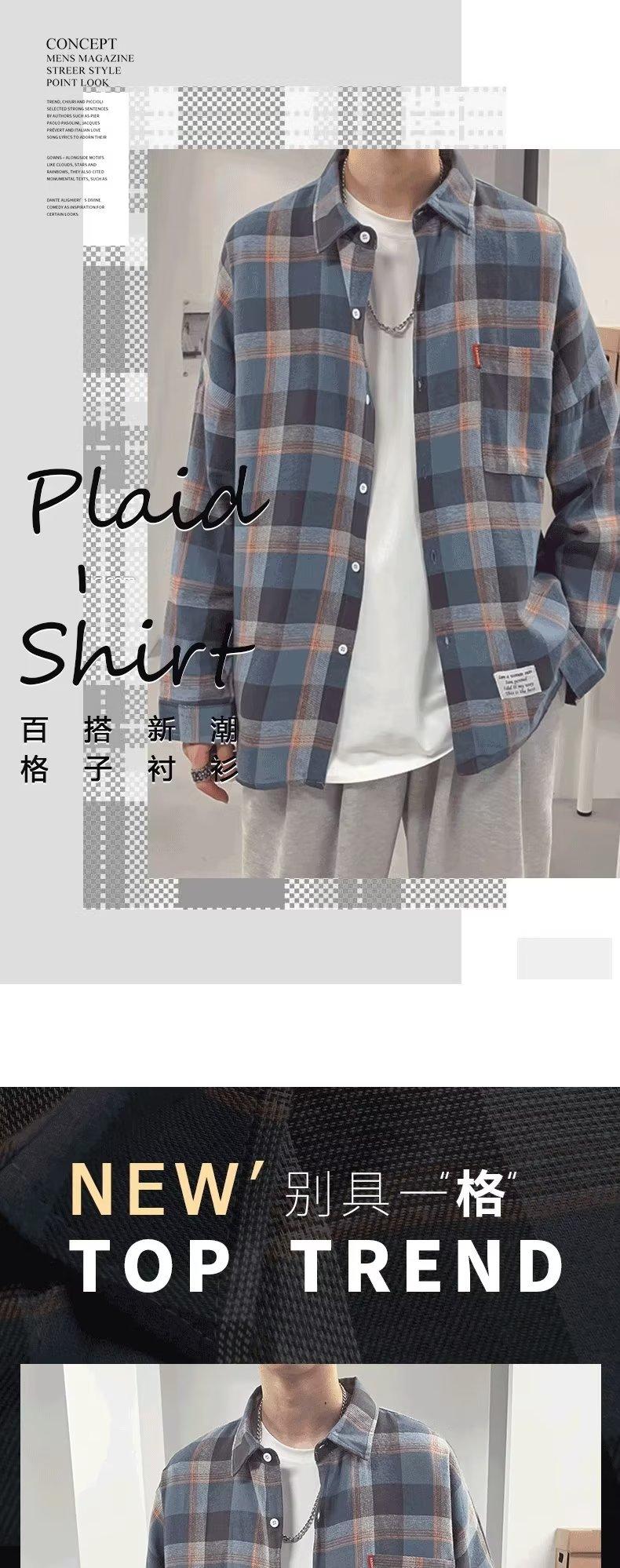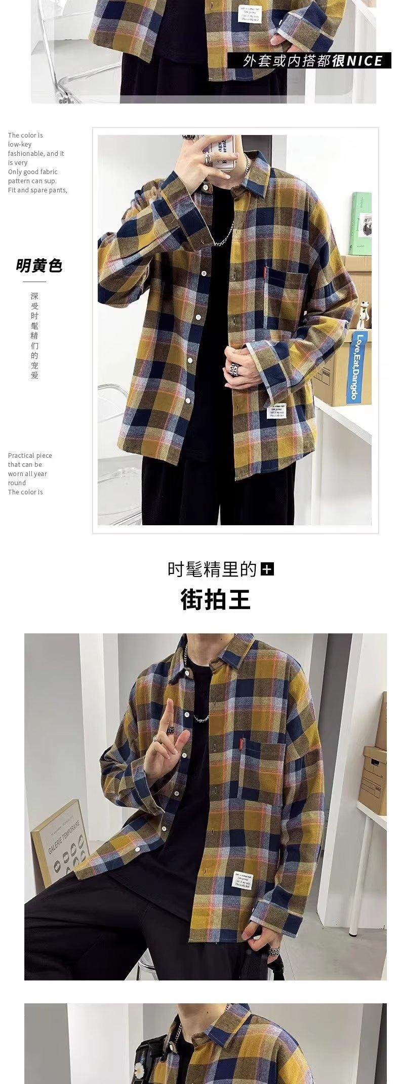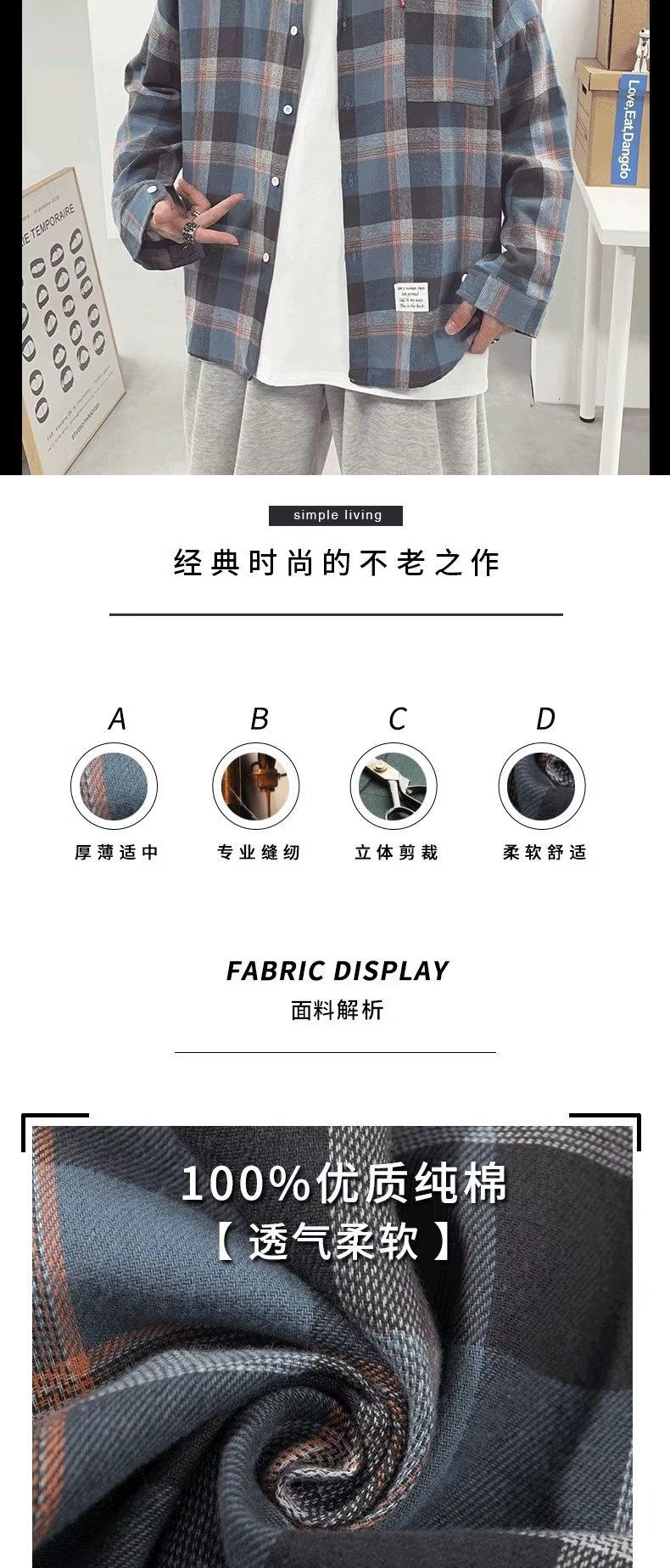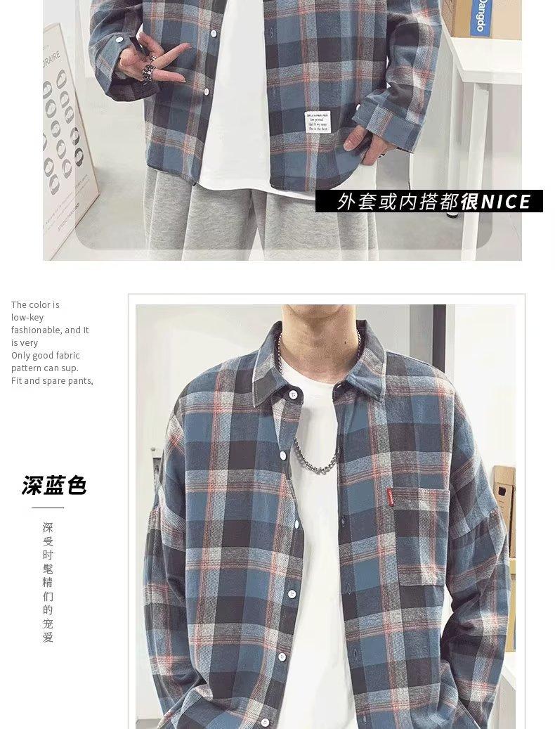 Primavera e outono nova camisa xadrez masculina casual all-match moda solto exterior vestir moda estudante camisa top